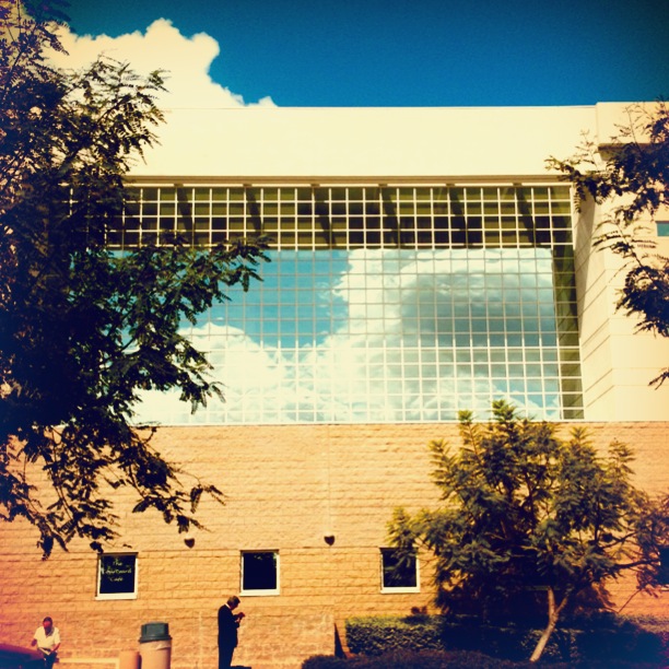As I left the building I took a few minutes to appreciate the beautiful fall day. Warm with a little breeze…and some silky, billowy clouds in the sky. As I looked back at the courthouse I noticed that the clouds were reflected in the high windows above the entrance. This bit of beauty remains imprinted on today’s experience.