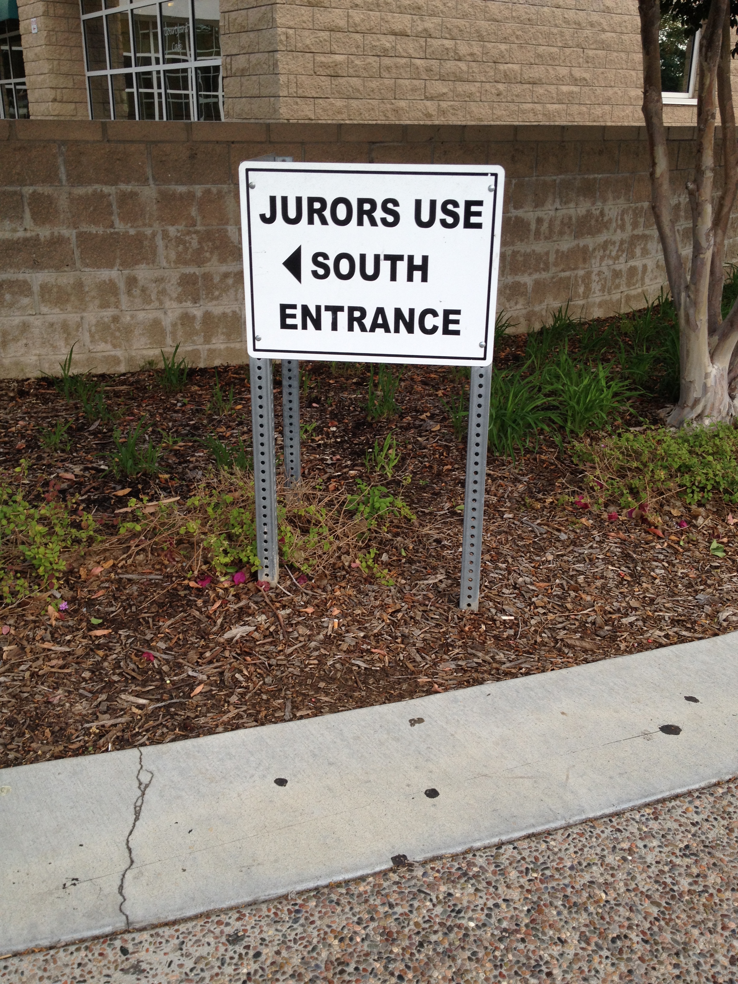 After three hours in the jury lounge, we were summoned for an announcement. There would be no need of jurors today and all 300 + of us were excused. Be sure to clock out on your timesheet and leave your badge holder and pencil for others to use.