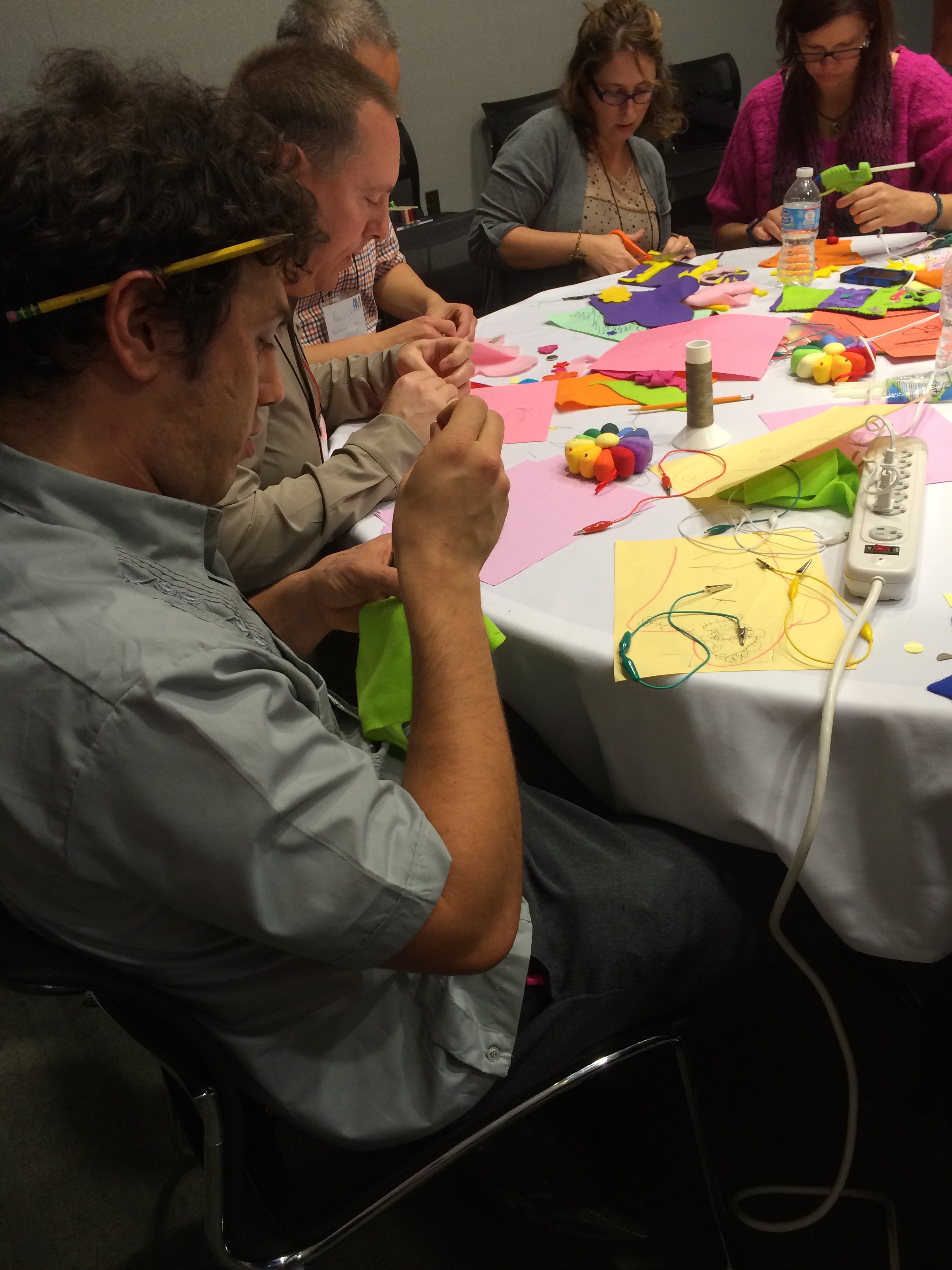 When one of my colleagues asked me about what sessions I intended to attend at the conference, I told her that I was planning to make my selections based on what sounded interesting and fun rather than what I “should” do for the good of my writing project site or someone else’s expectations. I was already pre-registered on Friday for a session about Scratch, the platform designed for teaching computer programming to kids, and a session on e-textiles involving puppet making and circuitry.