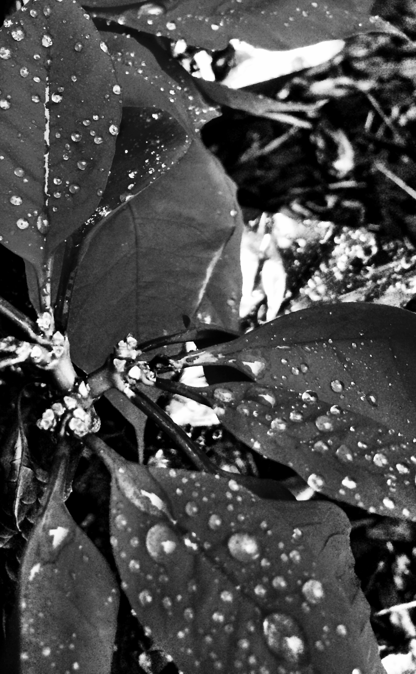 I love the way the black and white photo draws attention to the precious drops–something we see so rarely these days.