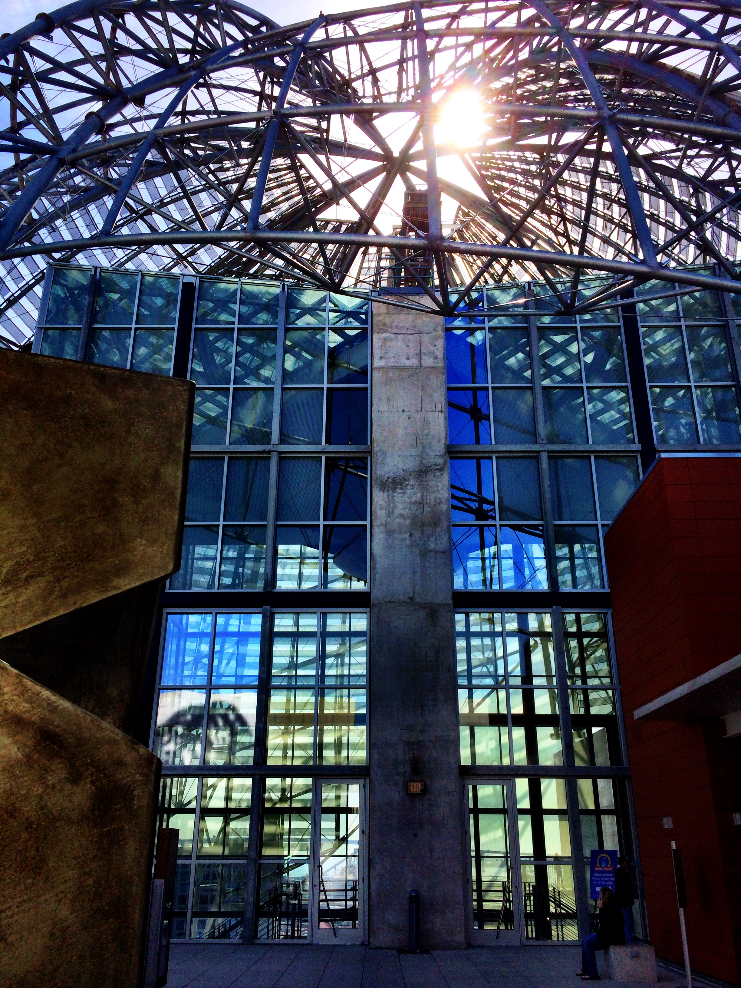 And one of my favorite moments was at the end of the trip, just before the students headed back to board their bus for the ride back home. They had discovered the pendulum at the NAT and were curious about the little blocks set up inside the circle where the pendulum swung. Would the ball of the pendulum knock the blocks over? They started watching by learning on the rail…and then got lower…until they were laying on their bellies on the floor, feet bent up behind them, noses pushed up against the railing. And they watched, almost holding their breath as the ball closely avoided the tiny blocks. And then it happened. The block fell…and the cheer broke the quiet!