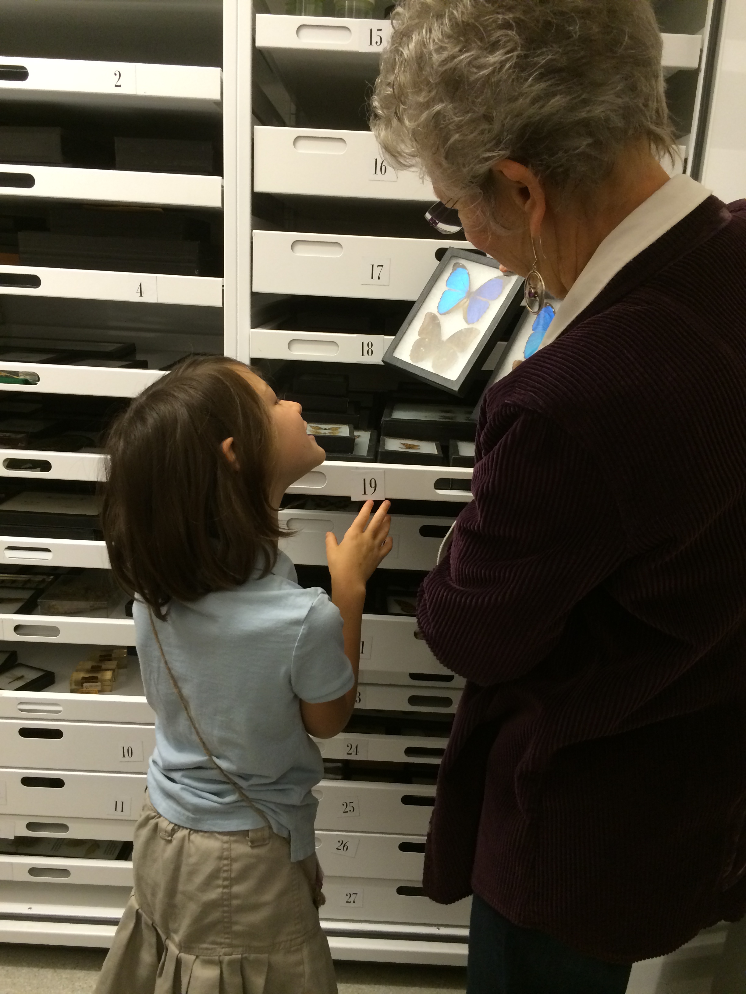 This little girl was fascinated by the butterflies and desperately wanted this specimen to come to her classroom. She asked if she could make a list of animals she wanted to bring back to school…and of course, she was encouraged to do so. Students spontaneously took paper out of the field bags and used all available surfaces: shelfs, carts, the floor… to write lists and other information they wanted to remember about these animals.