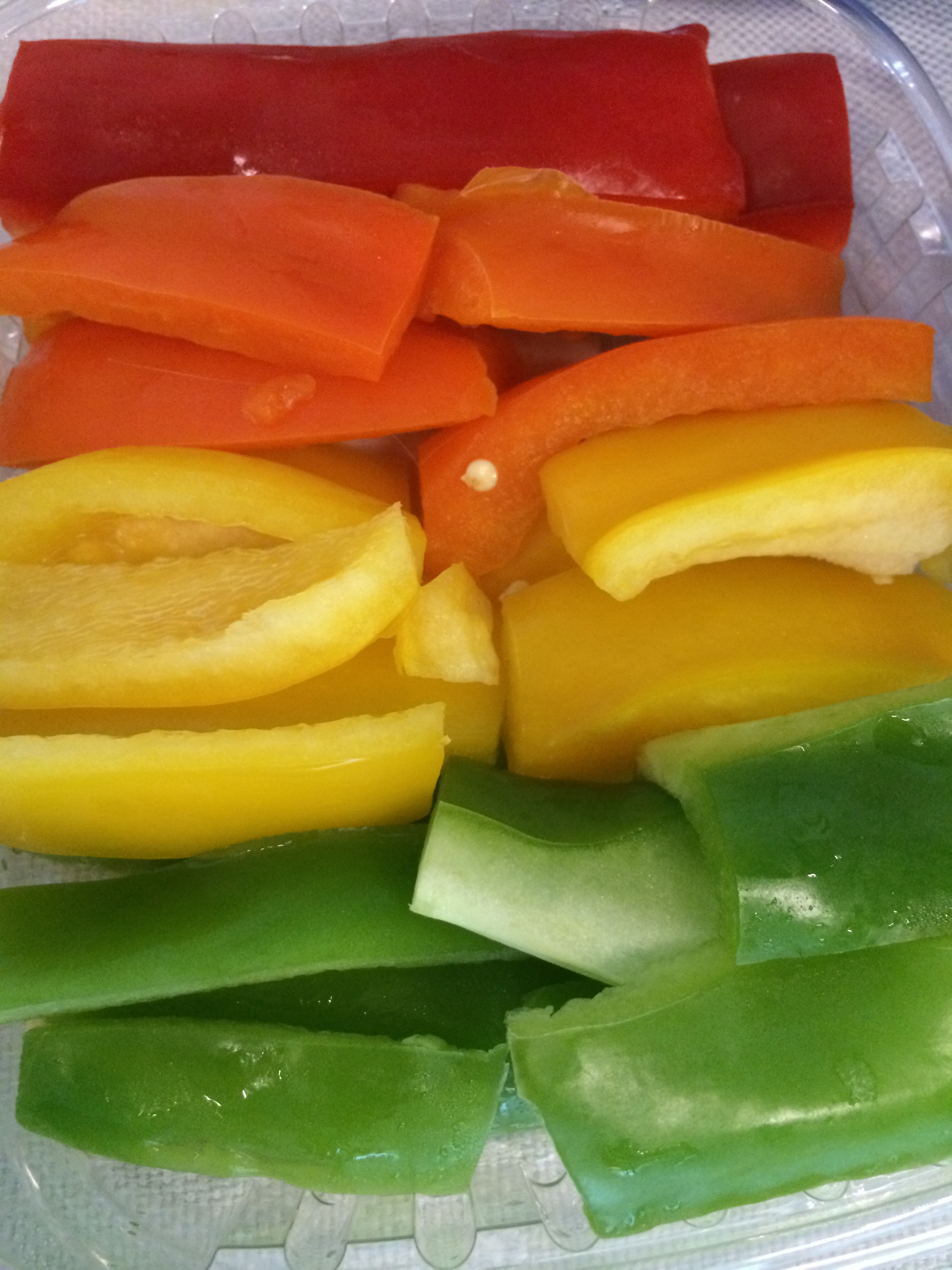 The Summer Institute snack table is often a work of art. I captured this rainbow of cut peppers last week sitting on the table.