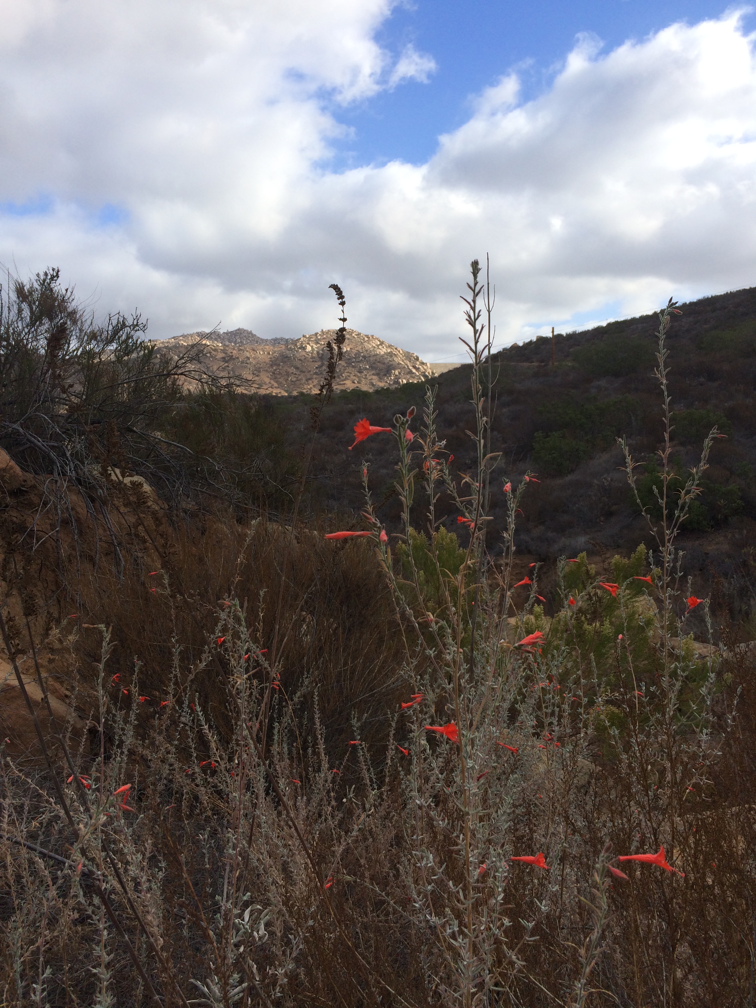 A walk on some hiking trails last weekend brought the dry and scratchy brush into full view…along with a tiny splash of color provided by the monkey flowers.
