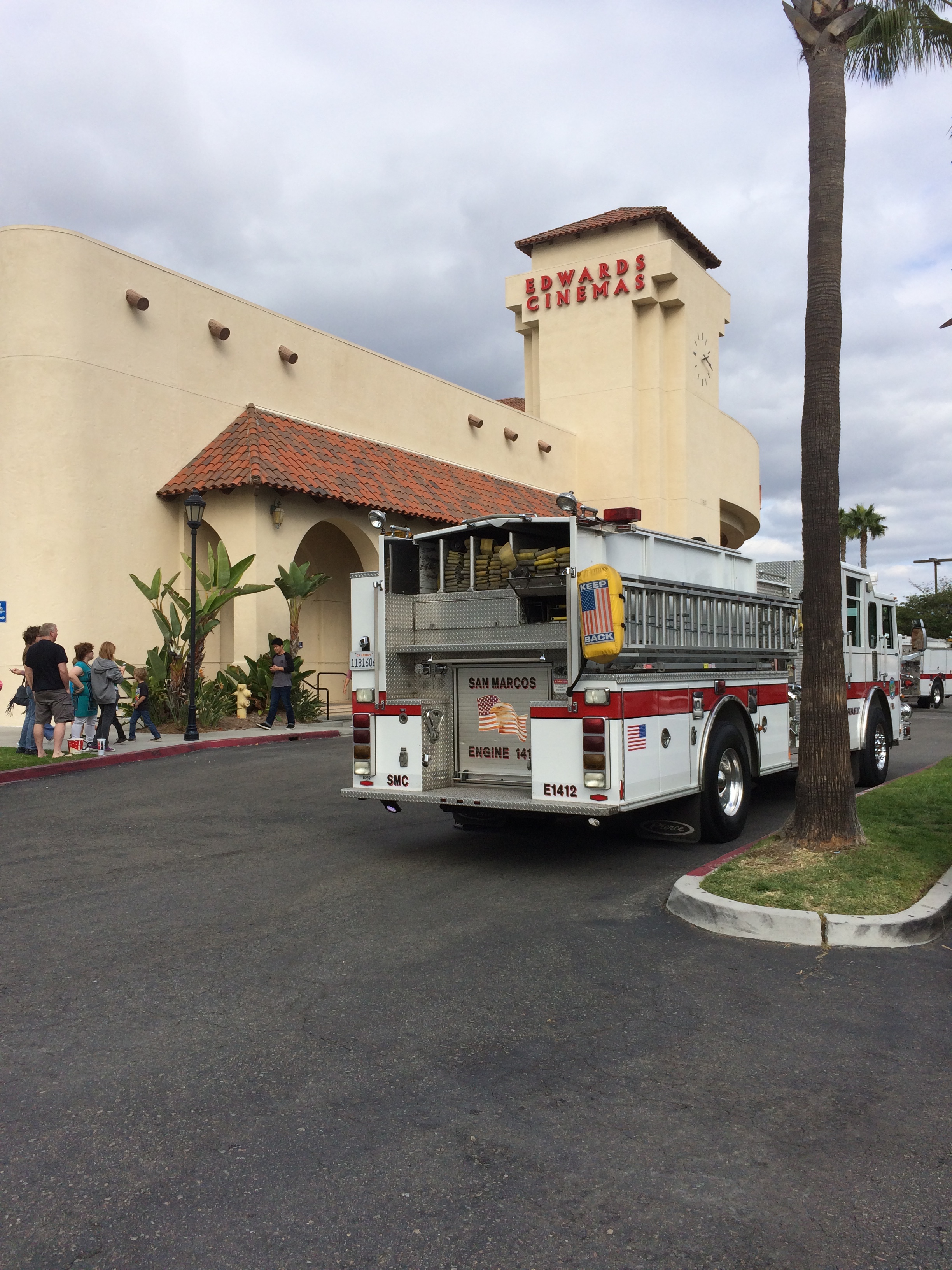 And so I was enjoying the movie, it was building to a critical juncture at about two hours in…when the fire alarm in the movie theater went off! The movie stopped, the lights came up, and the loudspeakers asked everyone to exit the building. My first thought was, oh no…I really want to see how the movie ends! People poured out the exits, wondering how they would see the ending of the movie. Most people seemed to think it was likely a false alarm, no one seemed particularly worried about fire.