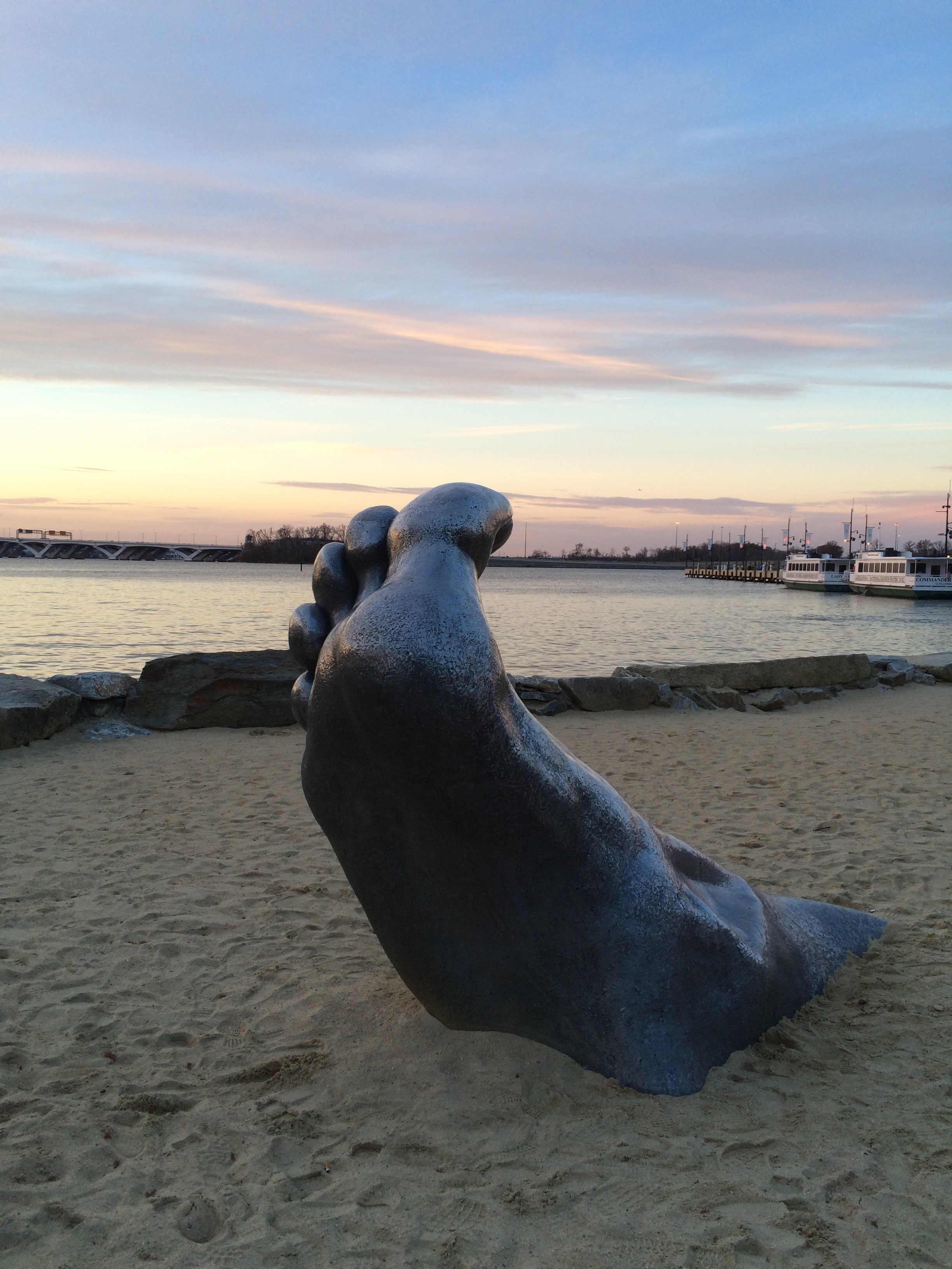 And in spite of freezing fingertips and eyes tearing in the wind…we discovered a little sandy beach sculpture garden…with body parts protruding!