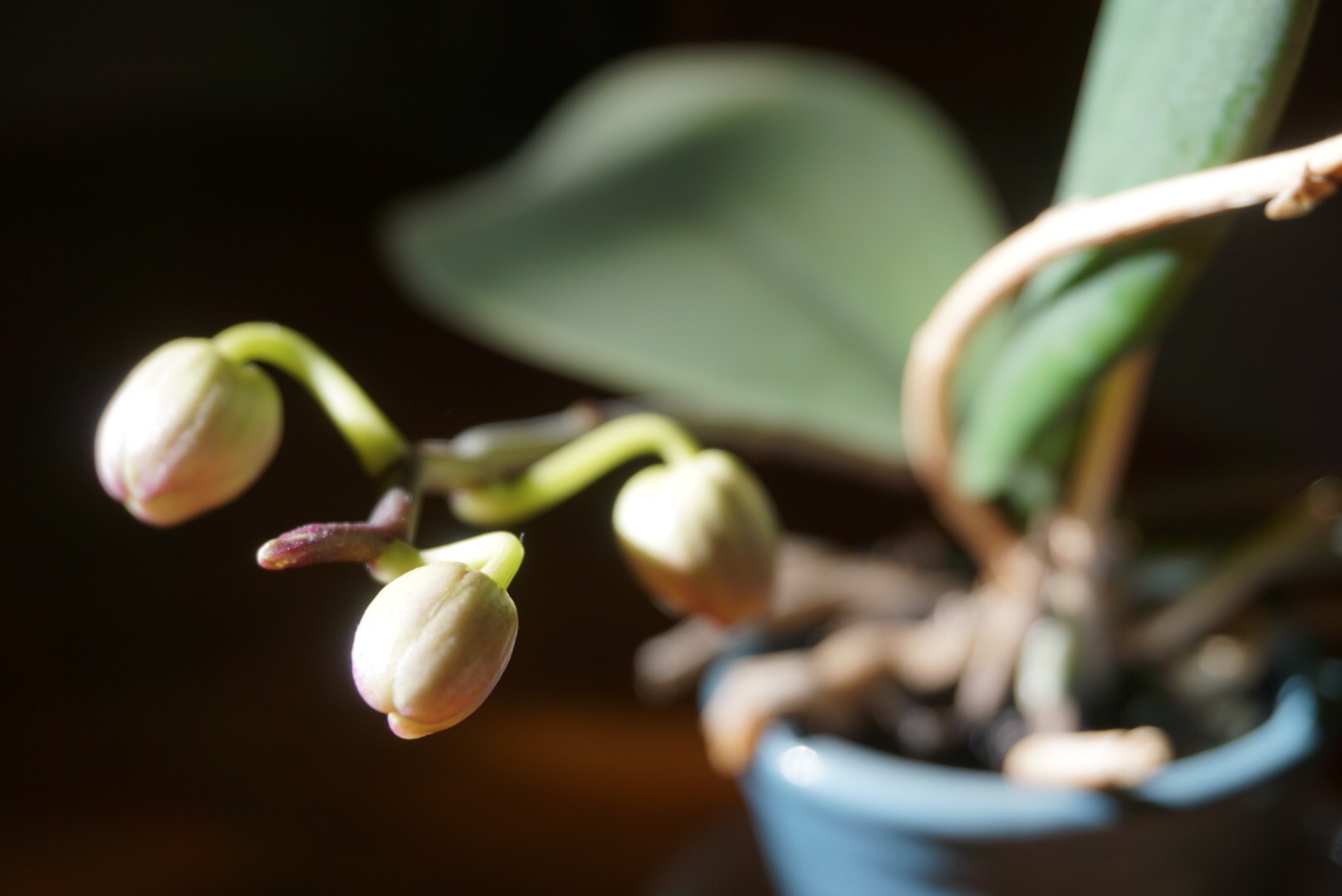Just this afternoon I was mesmerized by the buds on the orchid plant that nearly didn’t survive some time outdoors during our recent kitchen remodel…and the afternoon sunlight highlighted the enormous smallness of these emerging blossom.