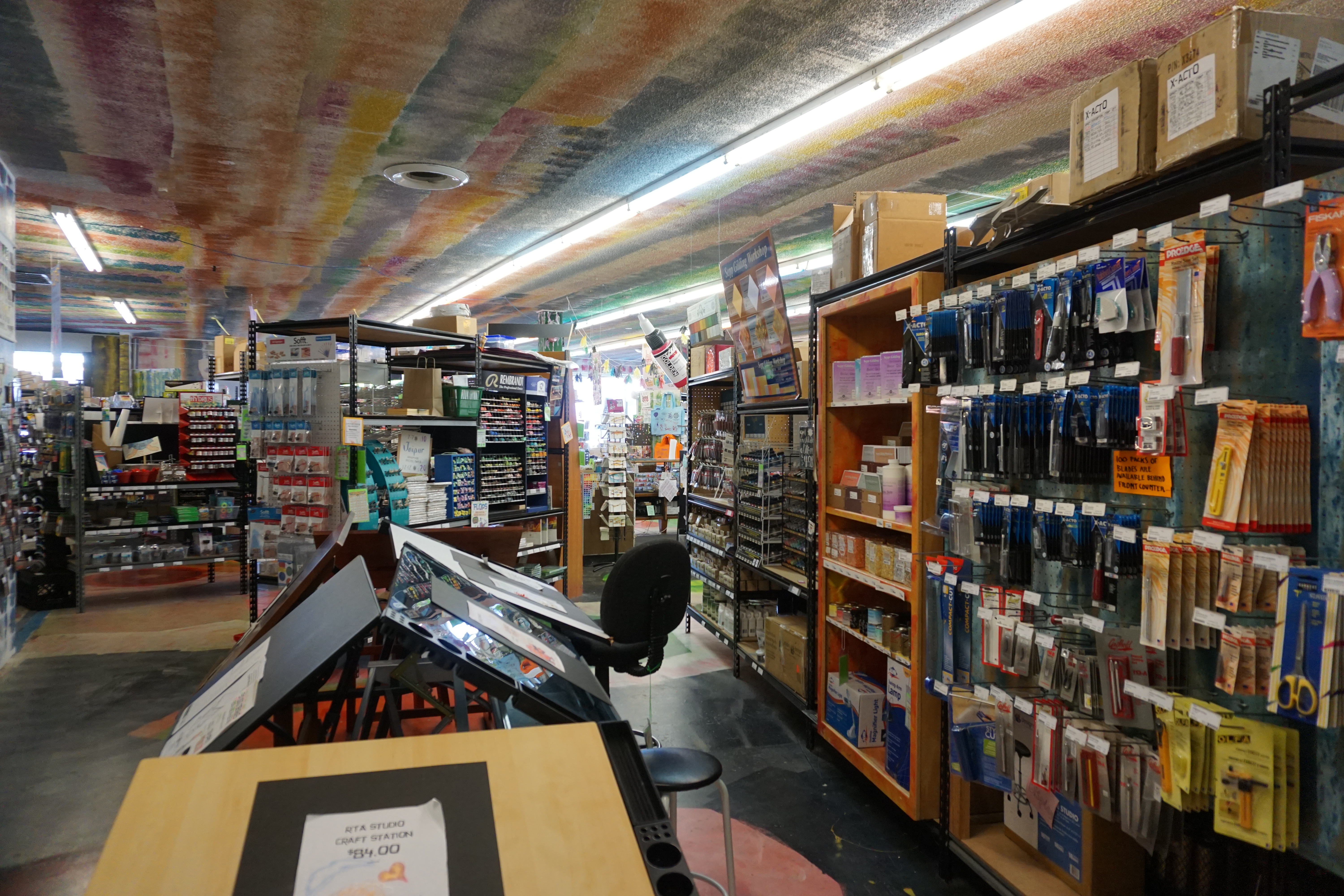 The surfboards lined up against this building are each a line individually and then come together to make a line of boards against the wall.