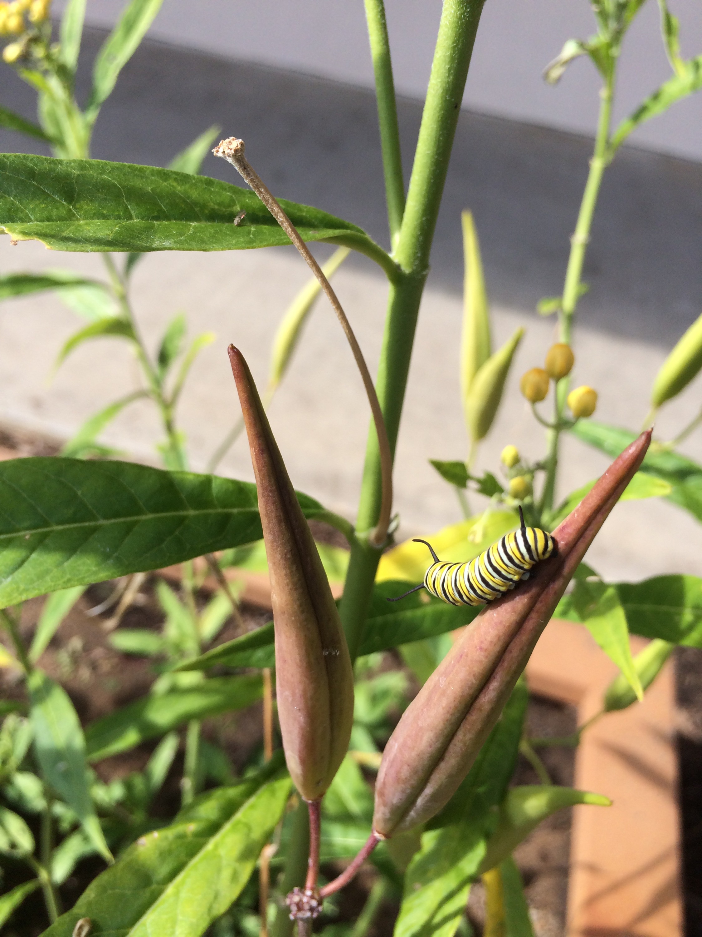 Nature seems to like lines too. Like the line of this milkweed stalk behind the caterpillar. (I’m loving these seed pods that burst open and expose fuzzy seeds that take off in the breeze…almost like dandelion puffs!)