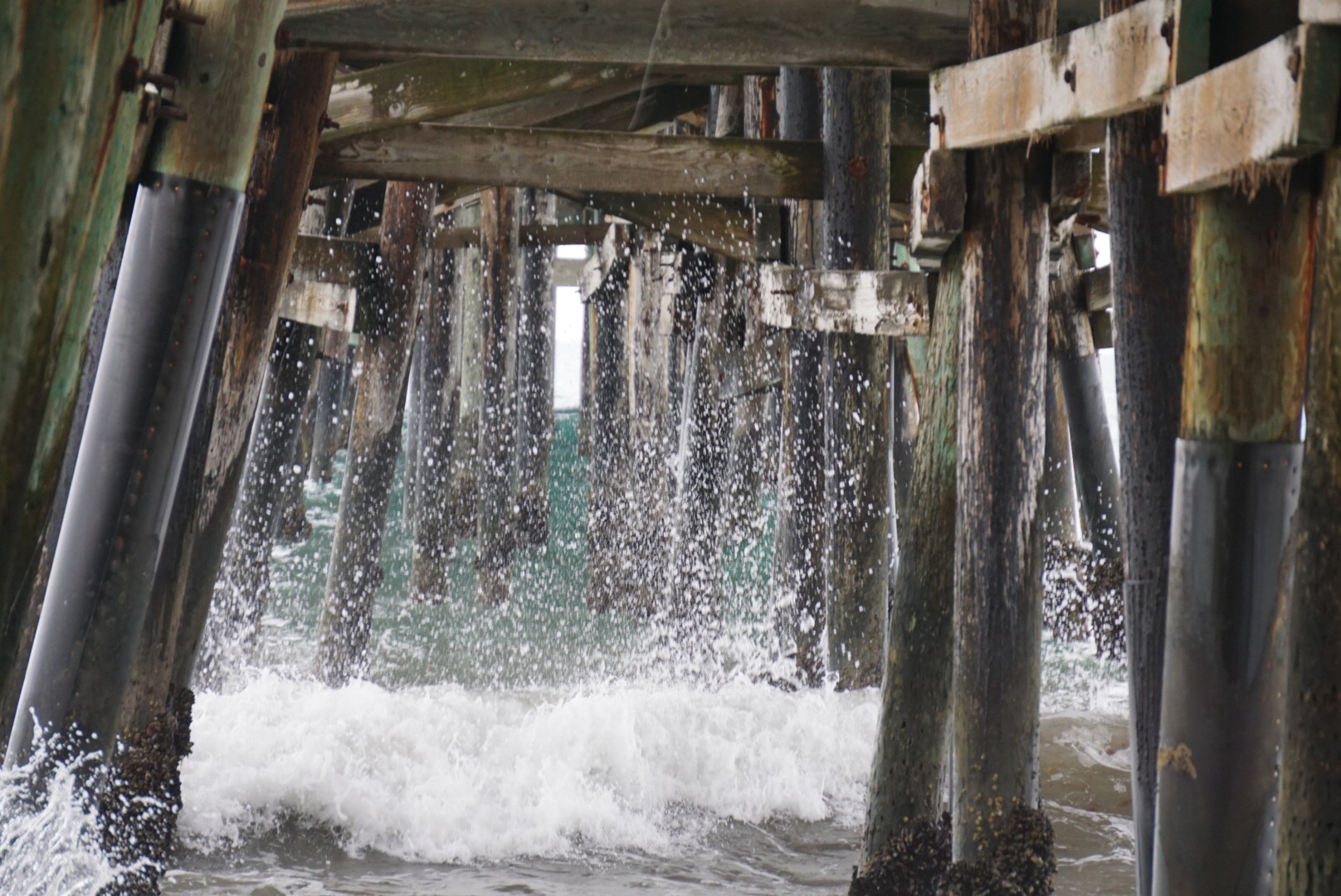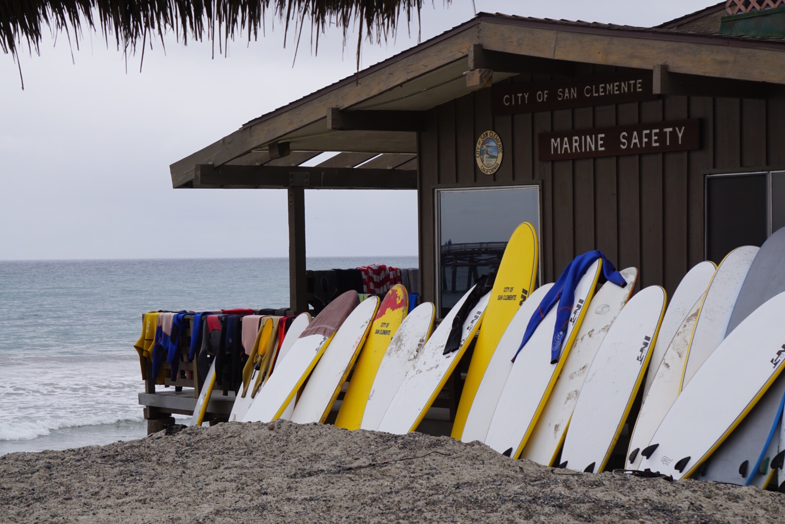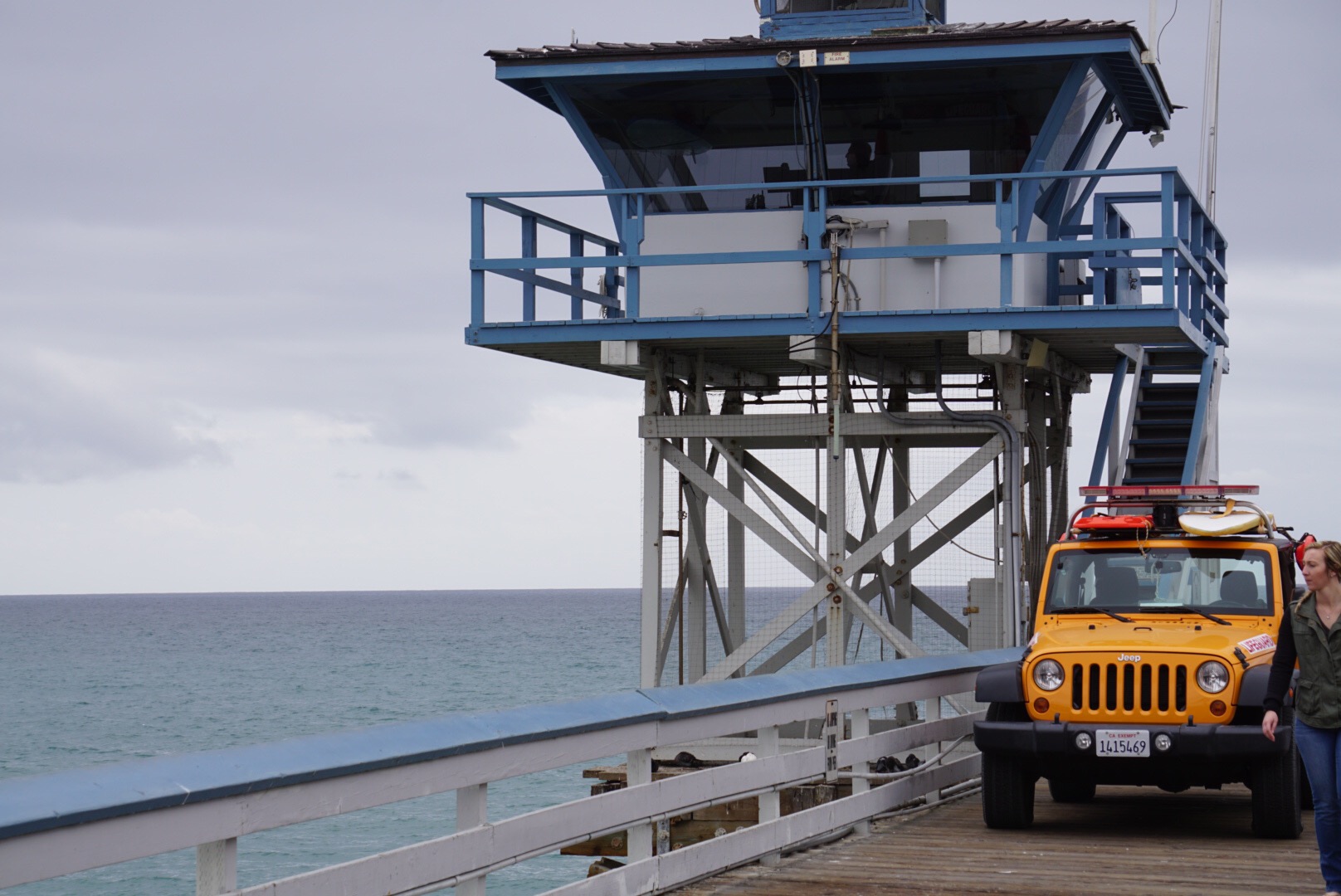 Or these on the lifeguard tower along the pier in San Clemente. (Notice the line of the pier railing and then the railings and the scaffolding of the tower above)