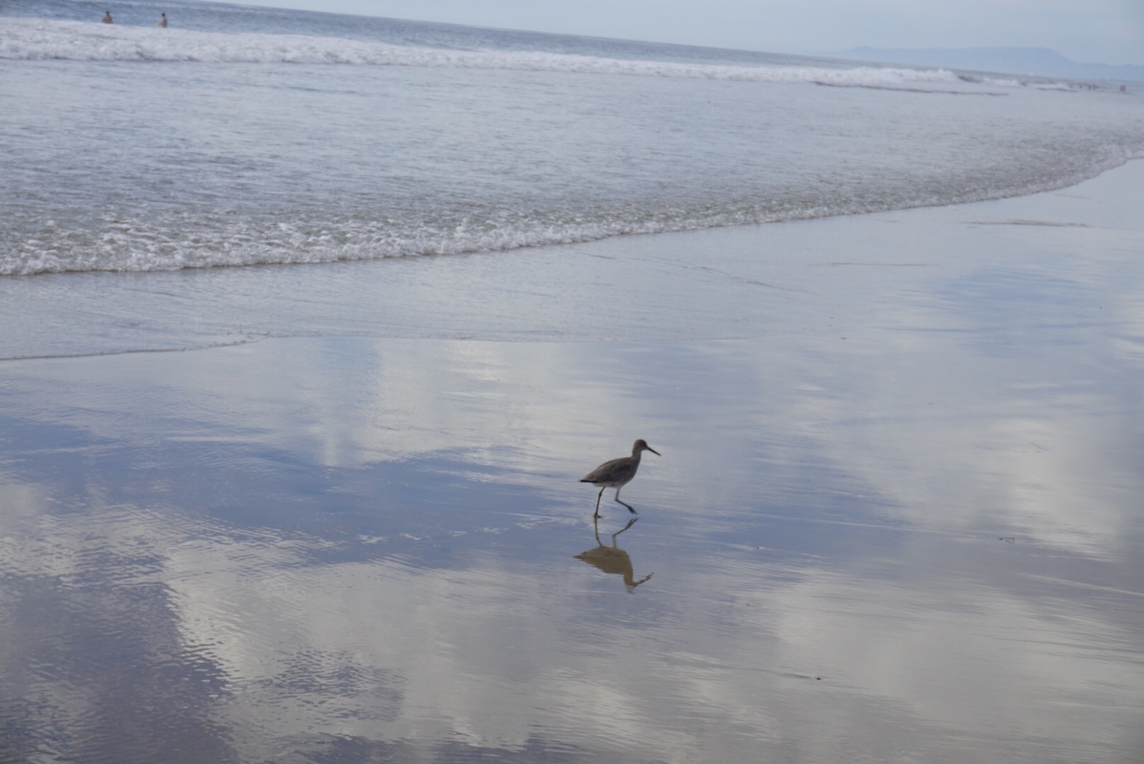 The reflection of the sun on the water creates a leading line that also highlights the lines of the waves and the clouds. Straight lines and curves playing together.