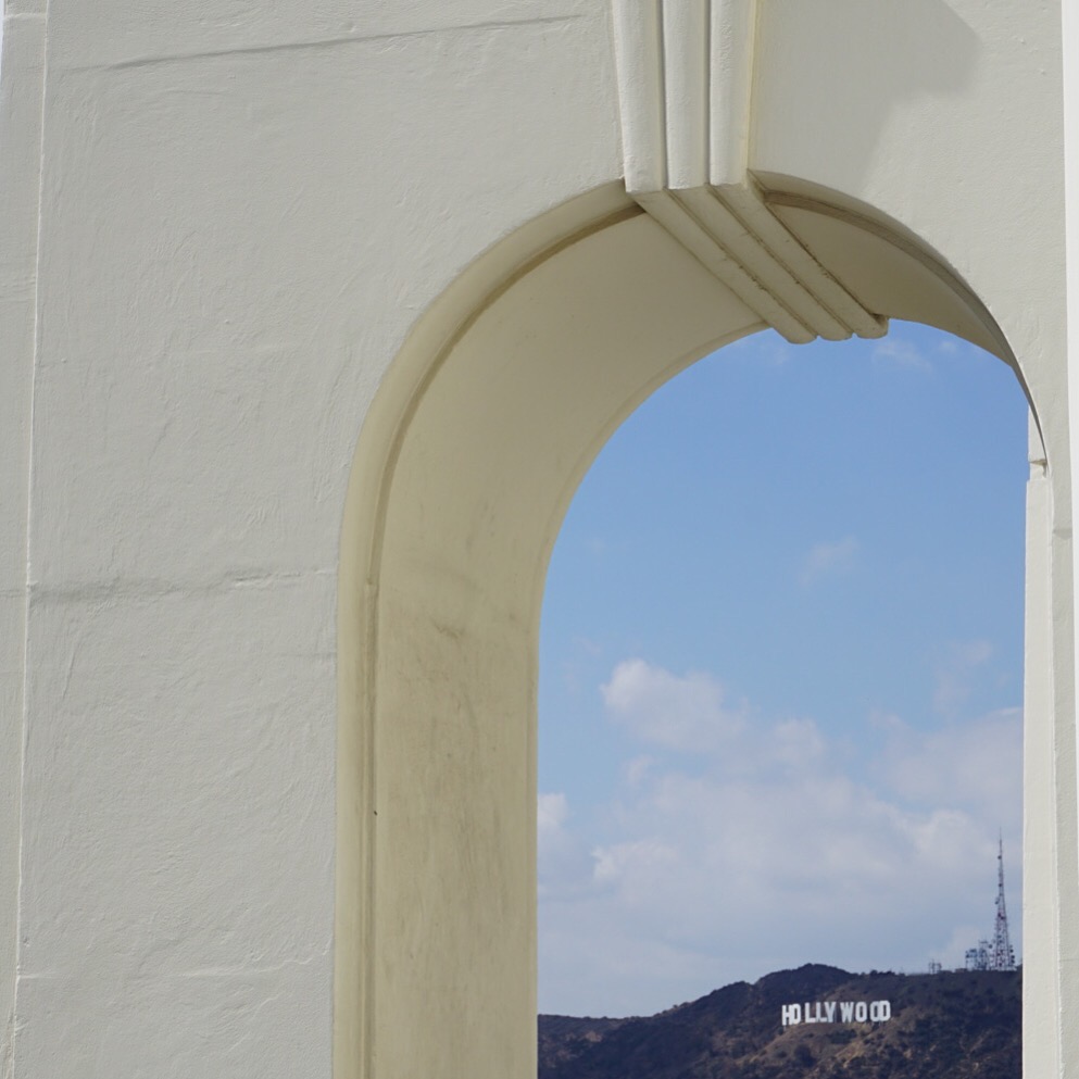 The archway at the Griffith Observatory made a natural frame for the Hollywood sign in the distance.