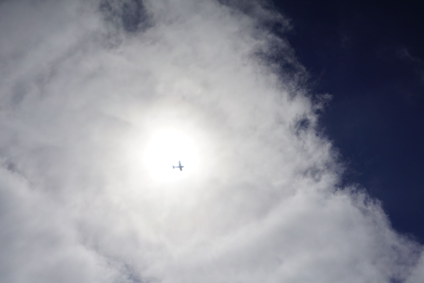 The reflection of the sun on the water creates a leading line that also highlights the lines of the waves and the clouds. Straight lines and curves playing together.