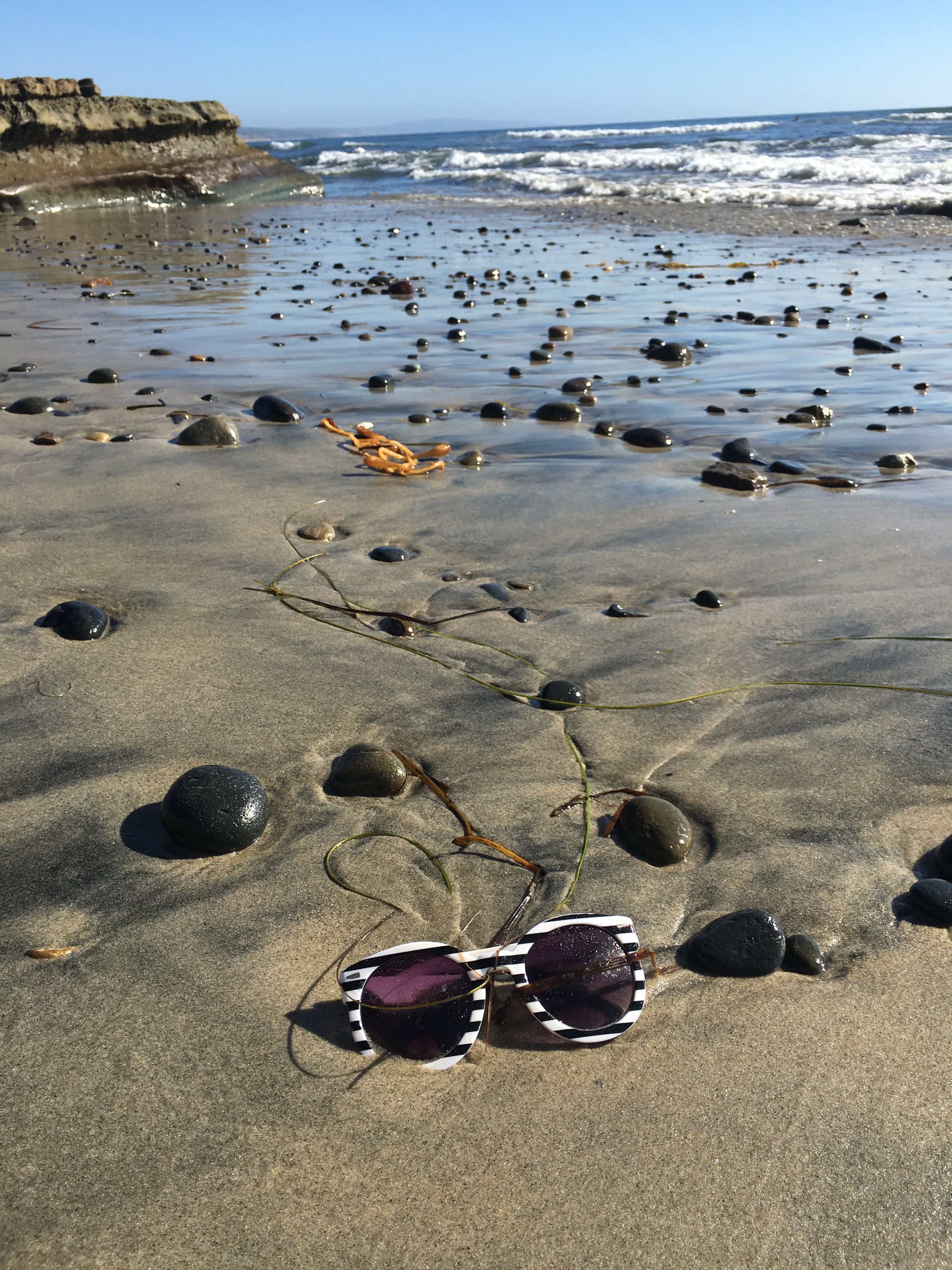 I always walk with a camera–either my Sony a6000 or my phone, so taking pictures is always part of my beach walk practice.  Most often, I walk with my husband and his practice is picking up the trash he finds on the beach.  When the trash is interesting, I take photos of it and post it to Twitter and Instagram using the hashtag #litterati.  Litterati is an effort to bring awareness to the problems of trash in our environment–they encourage people to photograph trash, throw it away, and post the photo to social media.  My friend Janis takes the most amazing photos of trash–they are truly art!  Some of them are currently on display at the Bay Model Exhibit in Marin County, near San Francisco, CA.  She also picks up pounds and pounds of trash on the beach.