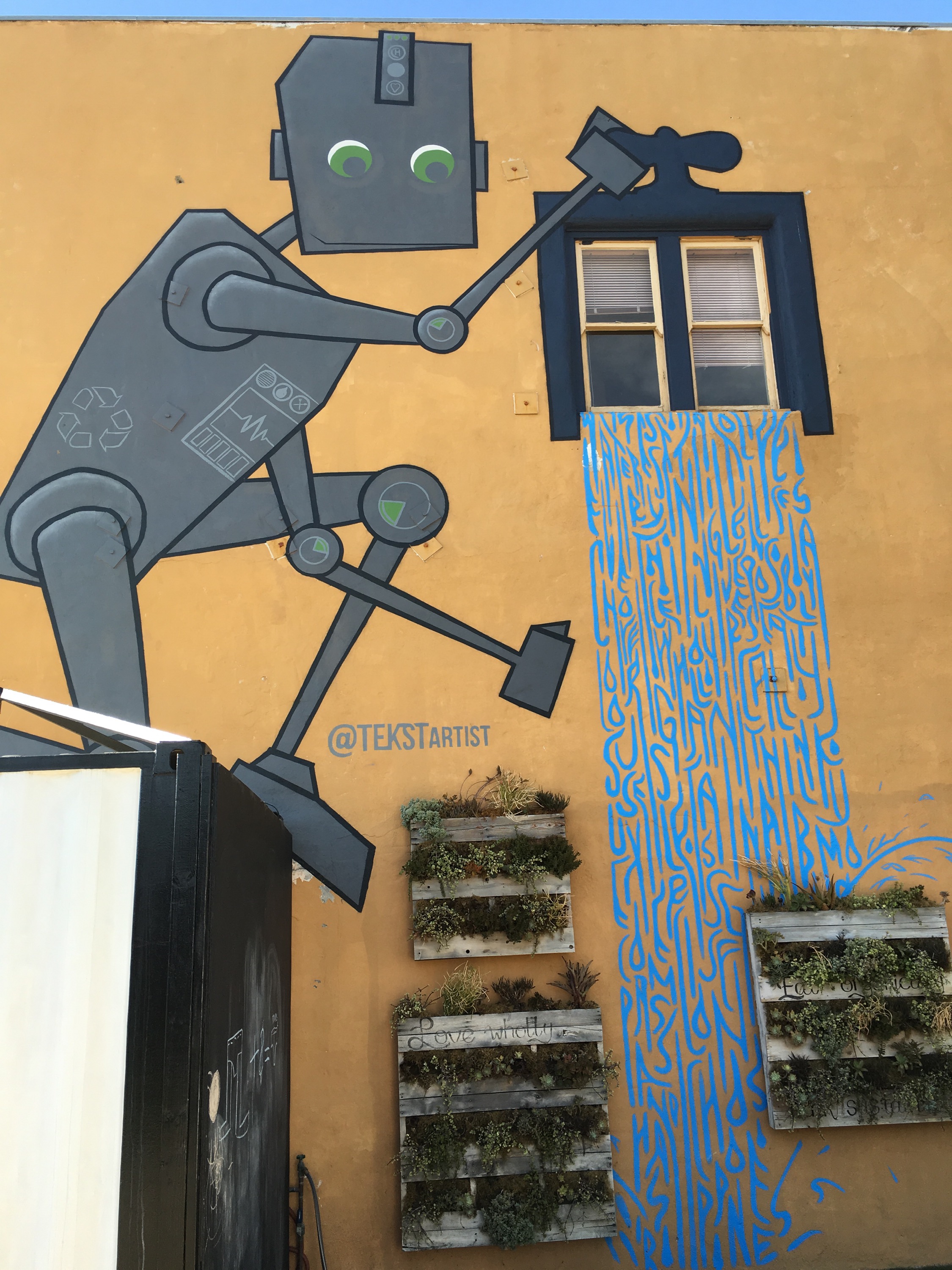 This week I’ve been working on reminding myself to take pictures, even when they seem ordinary.  Today I got lucky and had a bit of time to spare as I headed off to get my hair cut.  I knew I would stop and get some coffee…and remembered some wall art I had seen some weeks before but hadn’t stopped to look more closely.  I parked near my coffee place, but headed off in search of the walls I remembered.