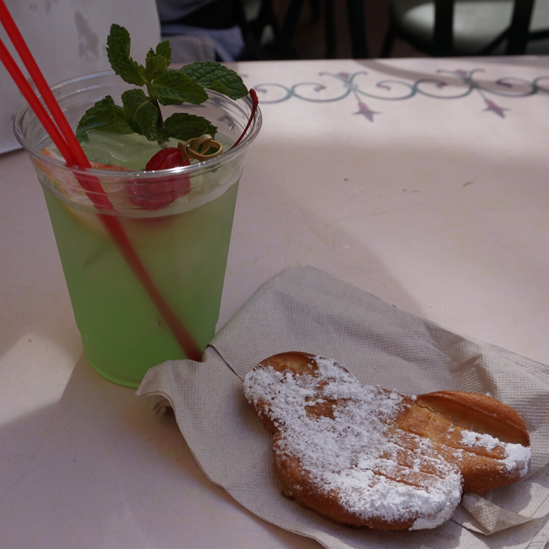 Disneyland is constantly changing–and some things never change, like the French Quarter in New Orleans Square where we headed after our first few rides (and lines) for a cool mint julep and Micky-shaped beignets.