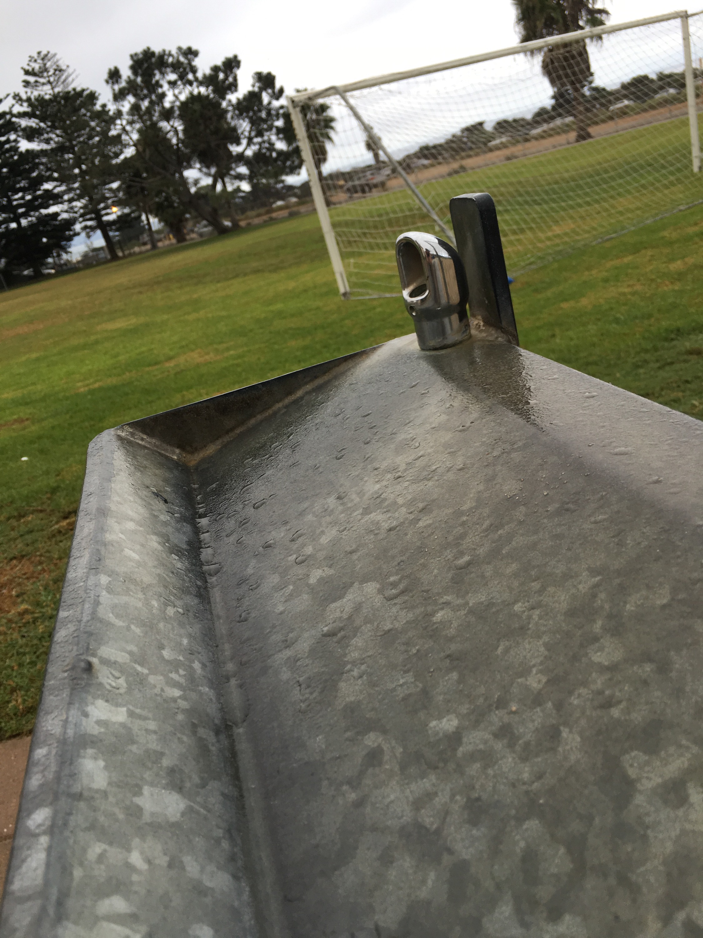 This week has been about looking for interesting, ordinary subjects for my photography.  I’ve been attentive to my surroundings, considering angles and frames as I look around.  This morning I was out on playground duty when the water fountain caught my eye.  I see this water fountain all the time, but today I saw it in a new way as I noticed the beads of water from the heavy, moist air.  I leaned in and took this shot.