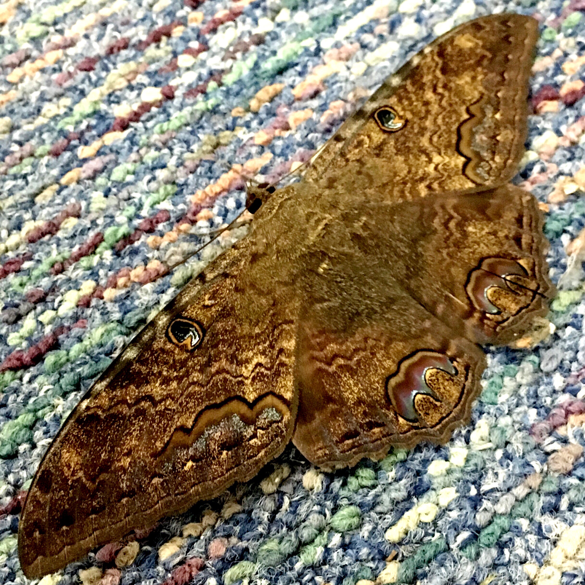 And even before that, as I chatted with the early arriving students in my classroom, I looked down at the floor and noticed this enormous moth!  It was bigger than my outstretched hand…and in retrospect, I should have framed my shot including something to give a sense of size perspective.  But I do love the wing detail that is evident in this view.