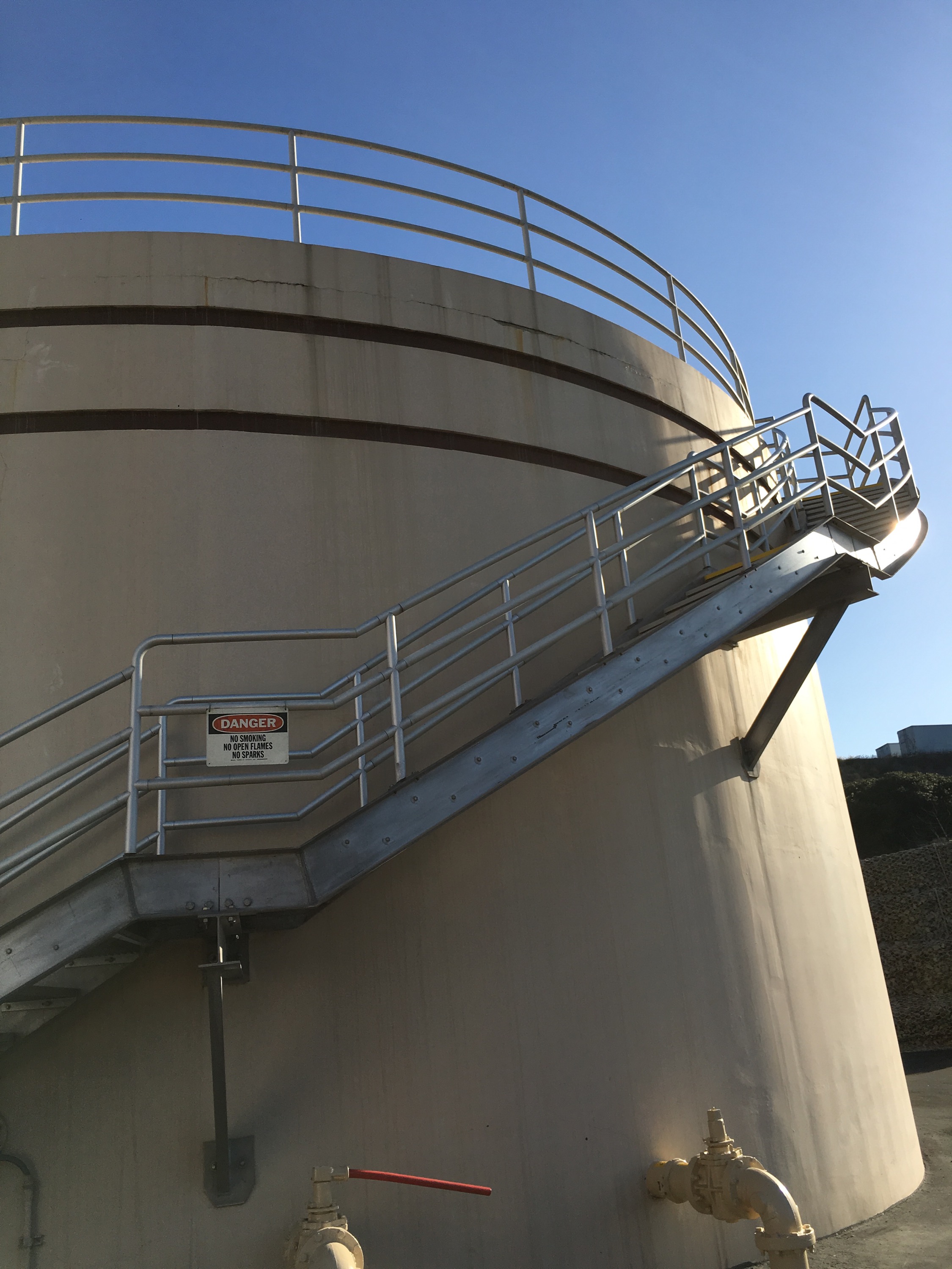 We saw the big overflow tanks…where waste water collects under these big sheets (the water you can see on top is some accumulation as the result of the rain we got last week).  There is an inflow of 3 million gallons a day!  (And they have a duplicate tank just in case there is a problem with one–they explained the importance of redundancy to keep the operation moving.)