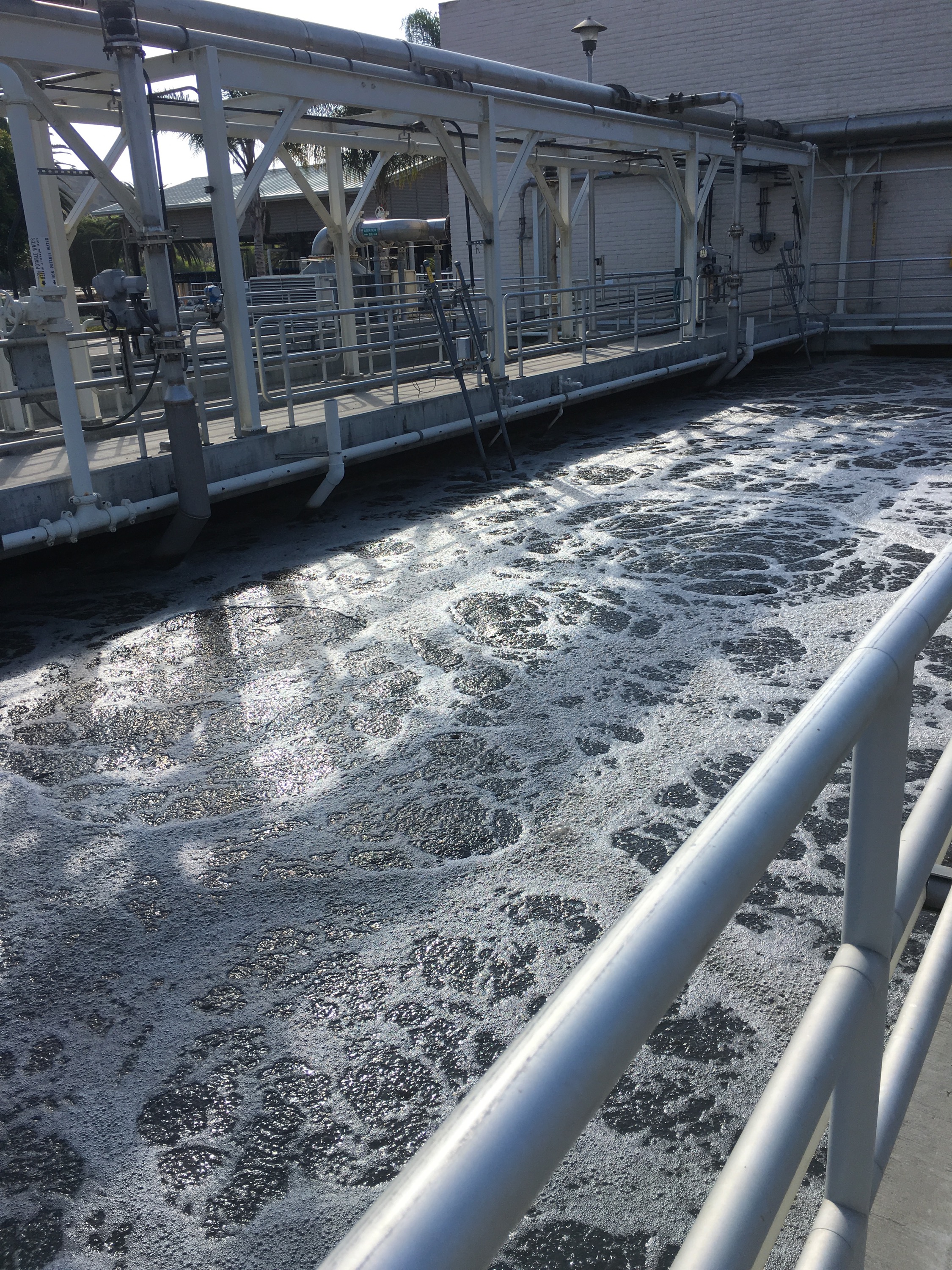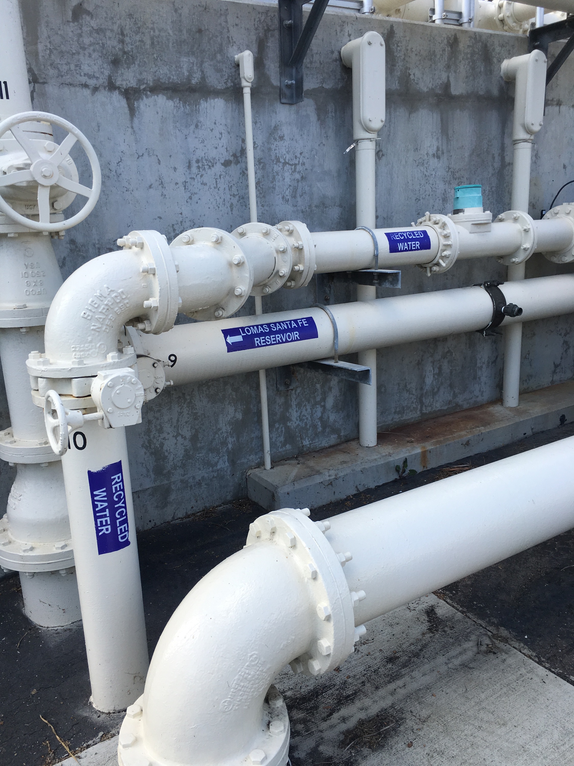 Once water goes through the primary, secondary, and tertiary processes, it gets to the recycled water state…for use in landscaping and on golf courses.  This stage flows into the purple pipes that carry this water throughout our community, but at the plant the water flows through these white pipes that will eventually meet up with the purple ones!