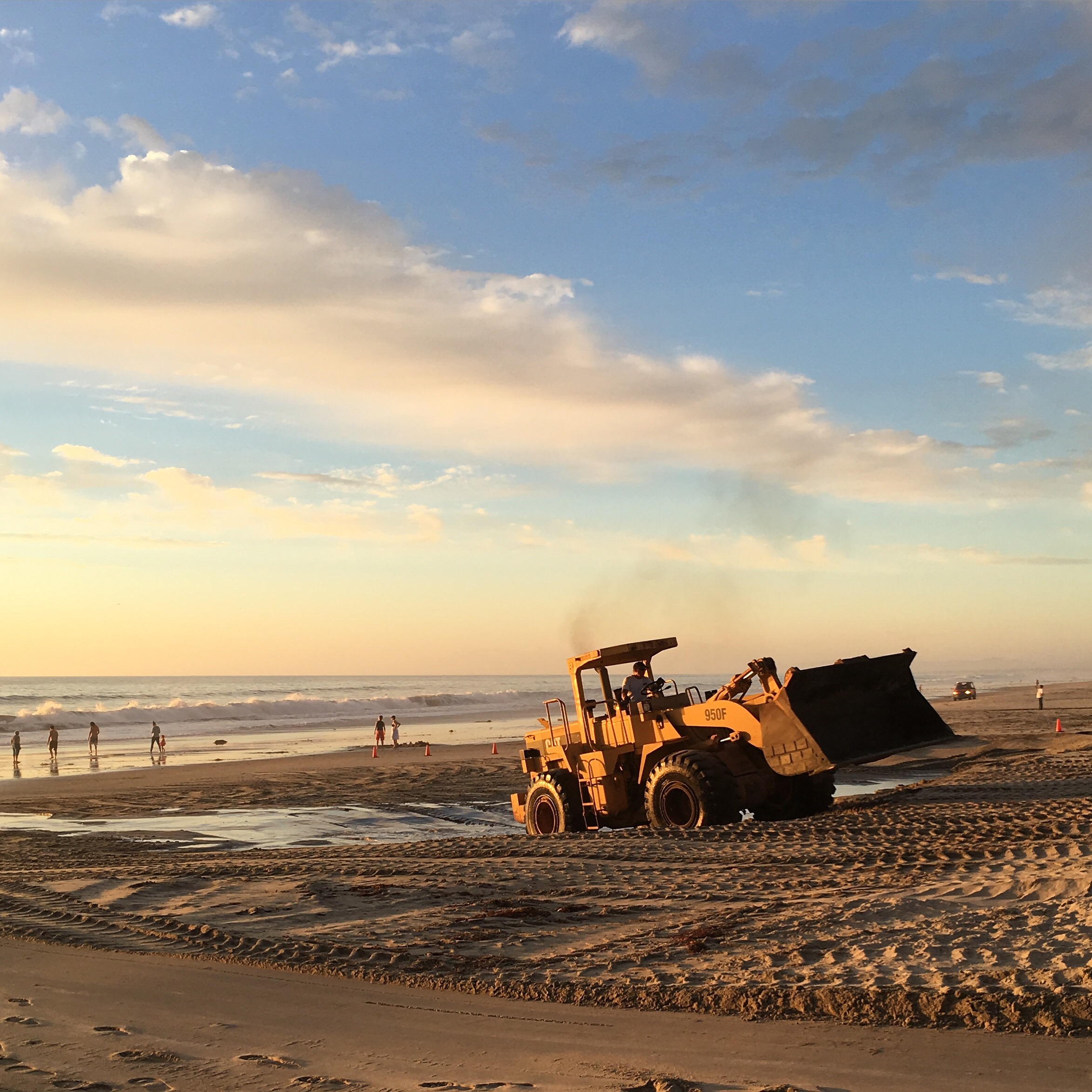 Just yesterday when I took a calming after-work walk on the beach, I saw this guy on a very large tractor creating a big berm along the shore to protect the beach from the fall and winter tides.