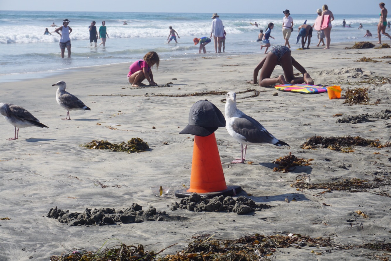 I often complain about the gray of the marine layer we experience here on the coast. The clouds seem to flatten my photos, making everything feel drab and dull. This week, with a heatwave in our region–many areas of our county experience temperatures in the triple digits–I am appreciating the thick gray dampness that blankets the sky. Without air conditioning in our school, the fog has kept things a bit cooler and more bearable. I watched these seabirds frolic in the gray as I walked the beach on my way home from work the other day.