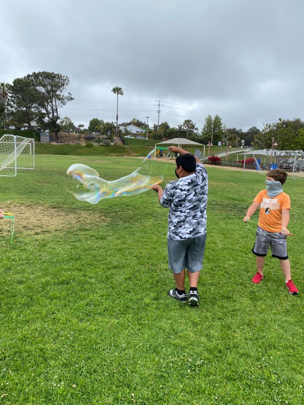 We started with a very interesting TED Talk titled, The Fascinating Science of Bubbles, from Soap to Champagne. We learned about surface tension, the geometry of bubbles and so much more. (If I were to do this in the future, I think I might devote an entire week rather than a whole day to bubbles!) Then we made our bubble wands and headed up to the field to make bubbles.