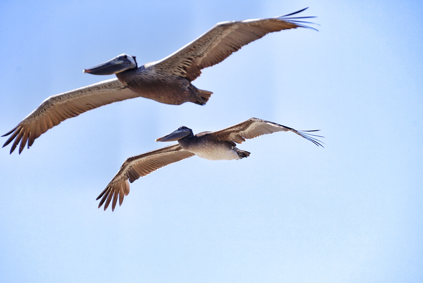 In May I headed up, climbing the stairs of another nearby beach. This place offers a vantage to watch seabirds above sea level. From this perch, pelicans come close, soaring by at eye level, bringing details into focus. The challenge is clicking that shutter at just the right time to freeze the image in sharp focus. I continue to work to achieve that ideal photo of a pelican in flight!