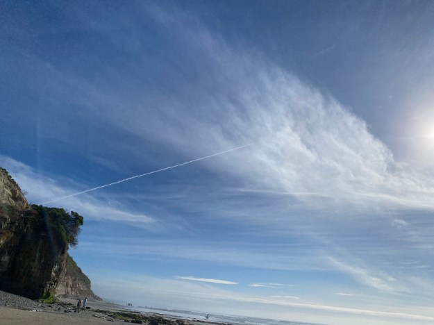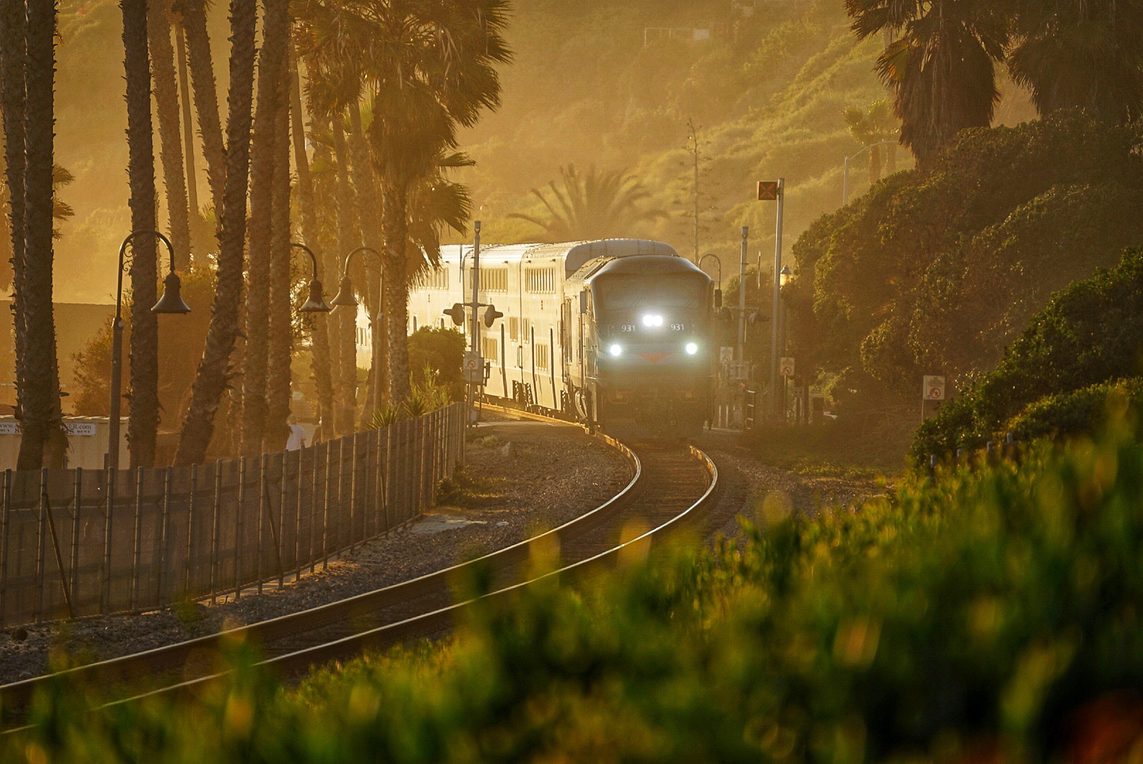 To celebrate our wedding anniversary in June we headed up the coast to San Clemente. If you know Southern CA, you know that June can be spectacular–sunny, clear and warm–or plagued with the infamous “June gloom” that grays out the coast, washing away color and cooling temperatures. Watching the Surfliner emerge from the foggy gloom around the bend with lights on created a mystical image. I love when the light is right and my camera is poised. You never know what may come out of the gloom!