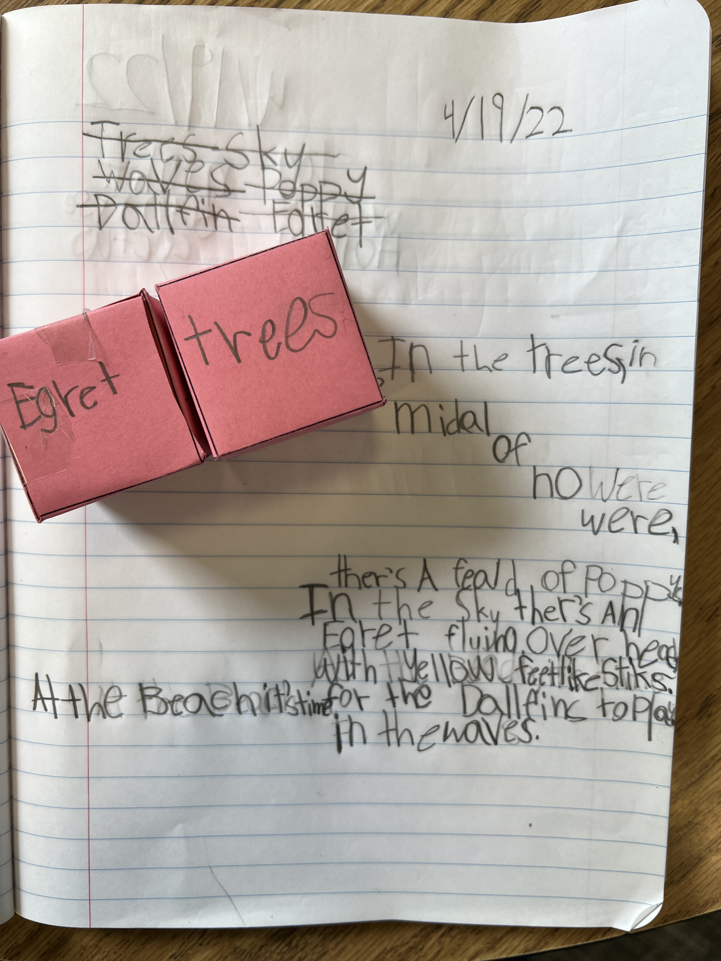Here’s a small sampling of poems that emerged from the roll of our student-created poetry dice:
