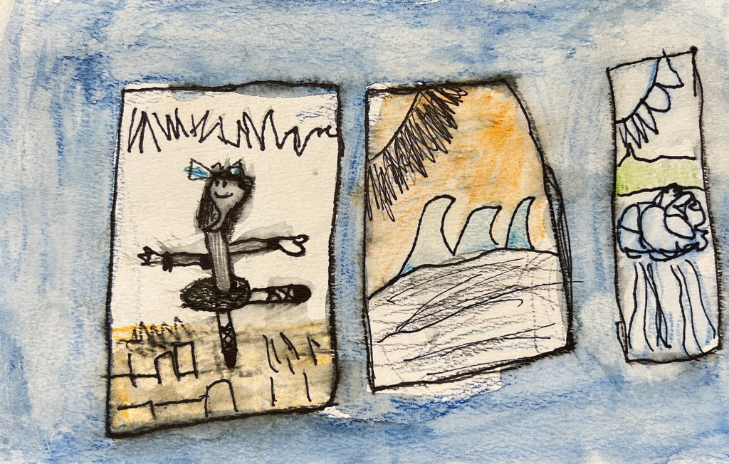 This year I offered to have my students write first. With first graders early in the school year, I wanted to make sure they started off from a place of abundance. Even before knowing who our penpals were, we created postcards illustrating things we loved. As they crafted their artwork, they were also thinking about their favorite activities giving them something to say in their postcards.