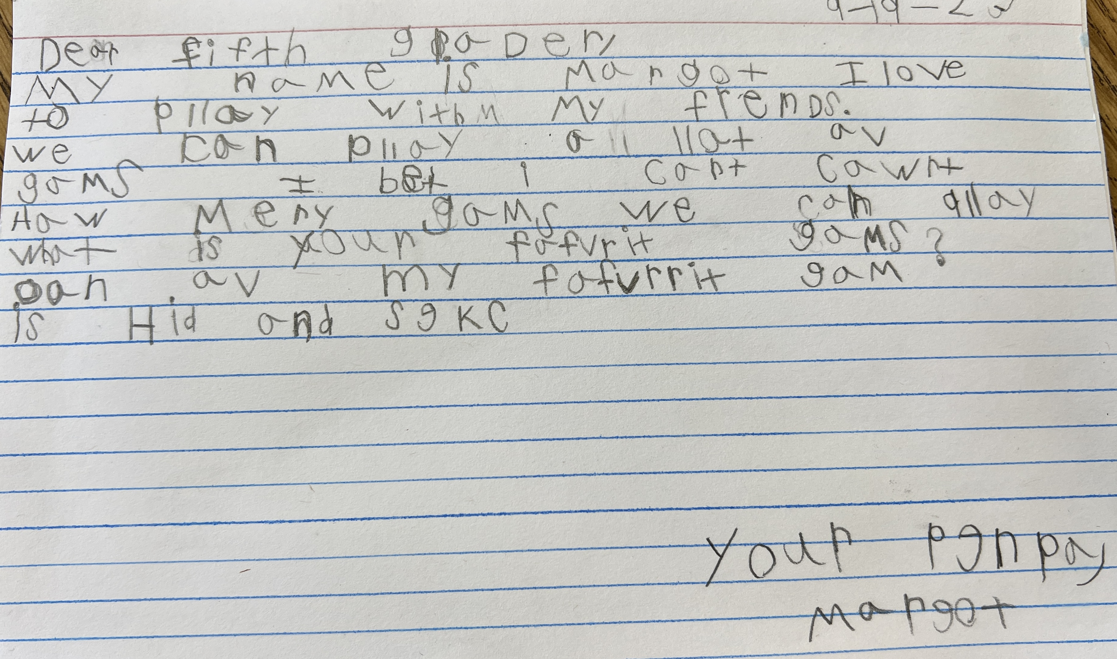 Our classroom hummed with energy. Students helped each other read their letters, compared photos, wondered about games they weren’t familiar with, and generally reveled in receiving a letter. We then took a few minutes to talk about how to respond to a letter and then they set off to write.