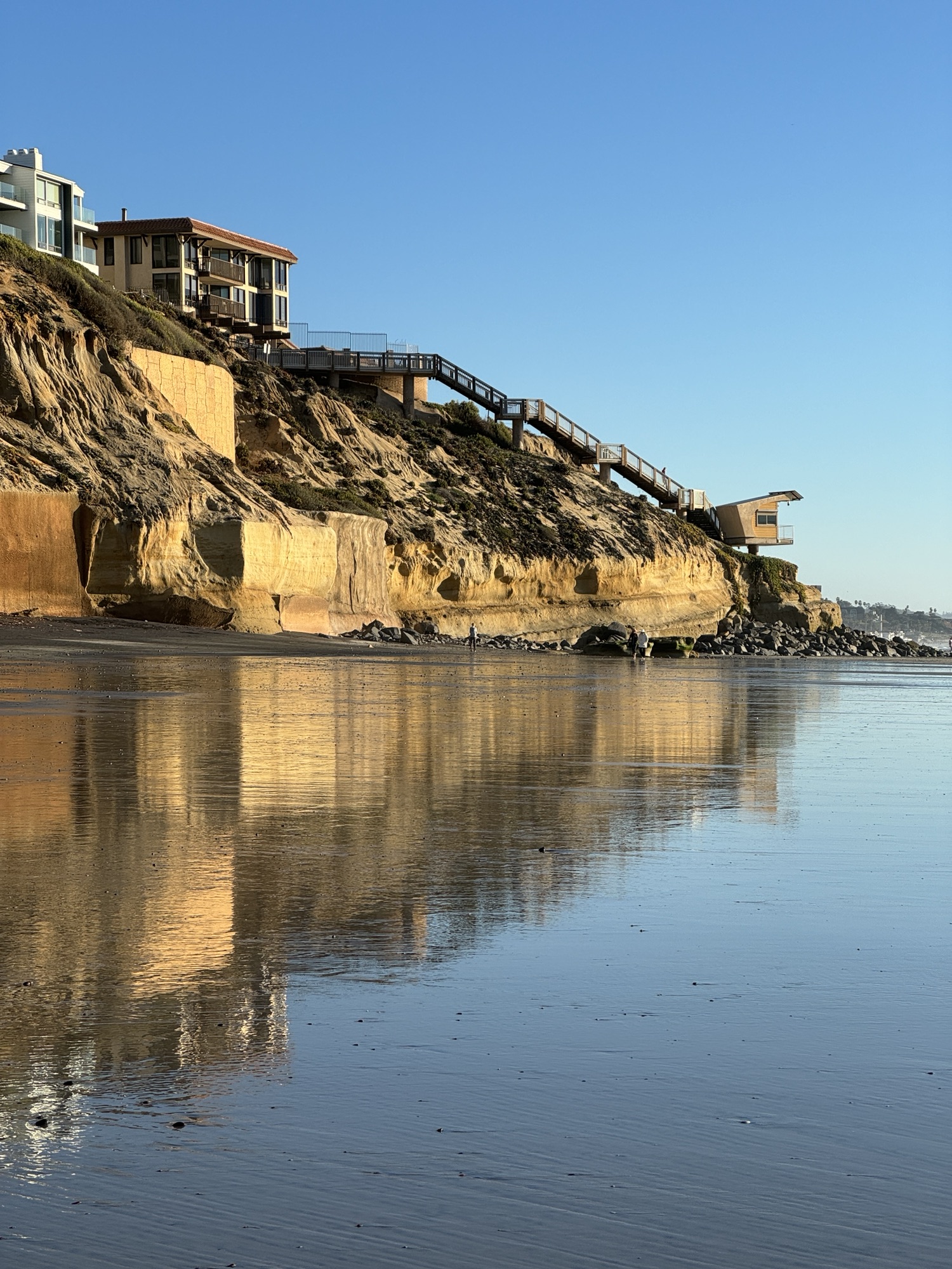 There is something so compelling about this tiny lifeguard tower in Solana Beach that perches on the cliff, jutting out into the sea. I’ve taken many version of this photo–and this is my favorite direction to shoot from. I love the low tide exposure, showing the rocks that are oftentimes covered with the sea. This unfiltered photo shows the February light on an afterwork walk, capturing the ordinary beauty of this less-than-ordinary, but functional building. I’d love to know more about the history of the building, who decided it needed to be here, why this design…and even when the decision was made to make lifeguard towers less permanent and more portable.