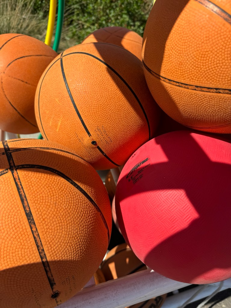 So, let me practice on you. What mathematical situations might come from the close up of these balls on the cart in the playground?