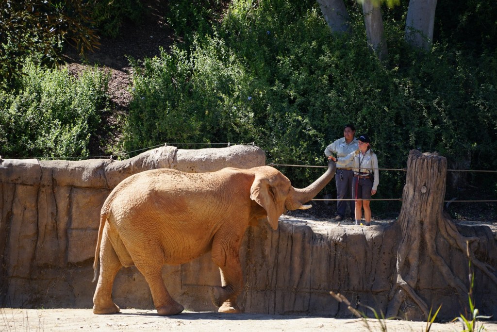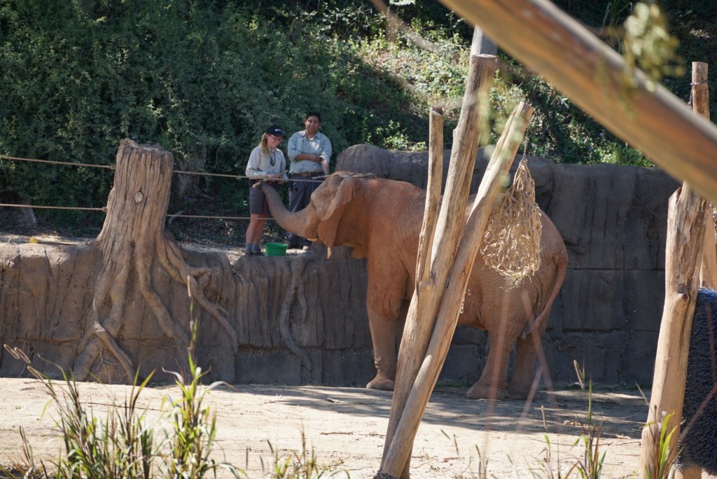 It was hot today–in the high 80s at our local Safari Park. We headed out to attend a preview of the new Elephant Valley–the enclosure where the eight elephants live. Elephants are special–smart, social, and full of personality. And I have to admit, I have gotten to know a lot more about them since my niece became an elephant keeper.
