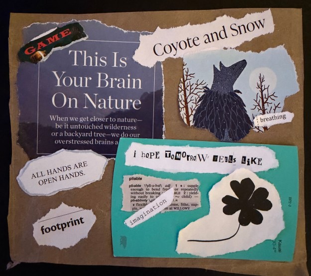 Saturday marked the 18th annual Spring Conference put on by the San Diego Area Writing Project (SDAWP). I had asked a friend and colleague if she would lead a session on writing as adults, knowing that she is writer through and through. She quickly responded that she wasn’t writing–she was struggling to find words as she dealt with some challenging life events. Instead, she replied, she was foraging, finding words in the wild using collage, black out poetry, playing cards, making zines, and more–and using these same techniques with her middle school students.