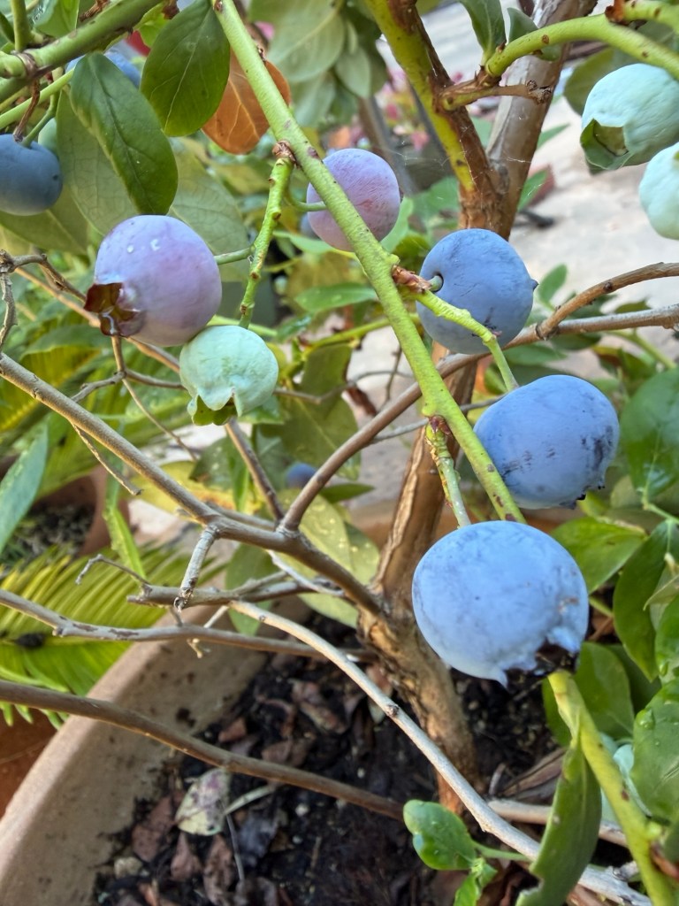 Your blueberries are beautiful. I love gardens that are a menagerie, like yours. Free spirited gardens that don’t worry or fuss too much when the insects eat the fruit. I think a plant banished to the backyard to go feral is much better than those left to shrivel up in the heat.