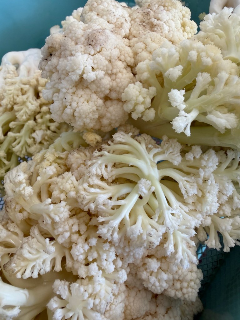 Kim, what a delightful pile of cauliflower. I hope the kids will embrace this veggie that grew in their own garden! Word play for the win: ” vegetably / meandering” is magical.