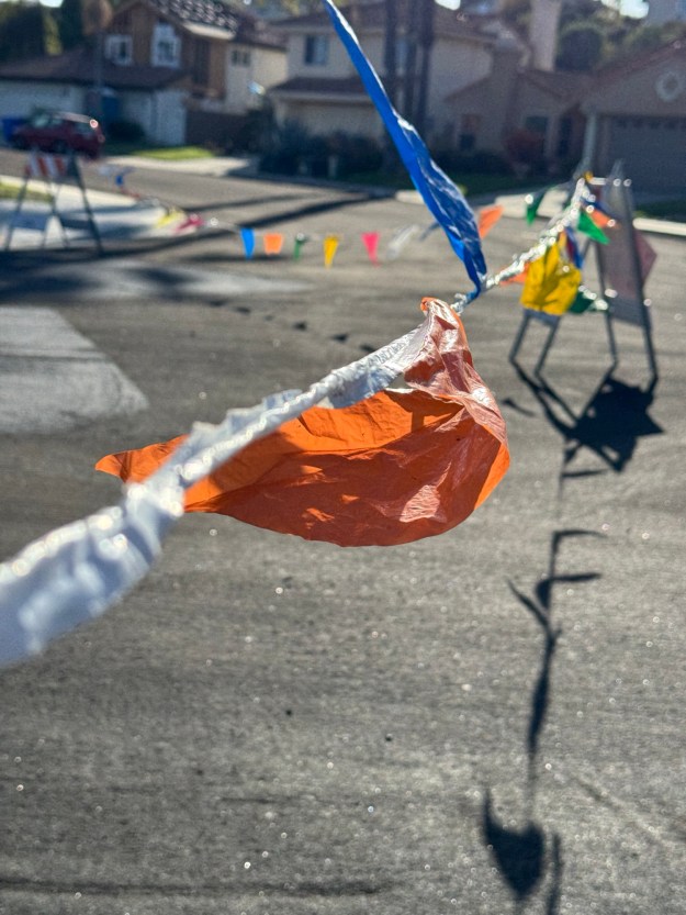 The city has been threatening to resurface our street for months now. Those triangular sawhorse-like structures have held signs shouting: “No parking December 23rd from 7am-5pm.” And then nothing happens. We had many changes of dates announced in December…and then with both relief and the frustrating anti-climax of streets that need work but don’t get work, we just assumed that road repair was not happening.