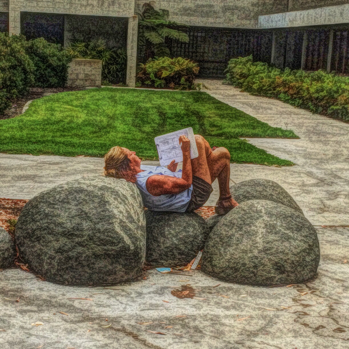I crossed the street and headed back in the other direction where I had seen another wall mural. But first I came across this incredible Eucalyptus with a huge trunk, rounded by years, thick and sturdy. I started to think about the ways our bodies change with time. And even if we work to stay thin, mature bodies thicken and bulge as time passes. I always feel like I want to judge my thickness, push it away, hide it…but admiring this incredible tree made me start to rethink my attitudes. I’m still working to embrace the aging process.