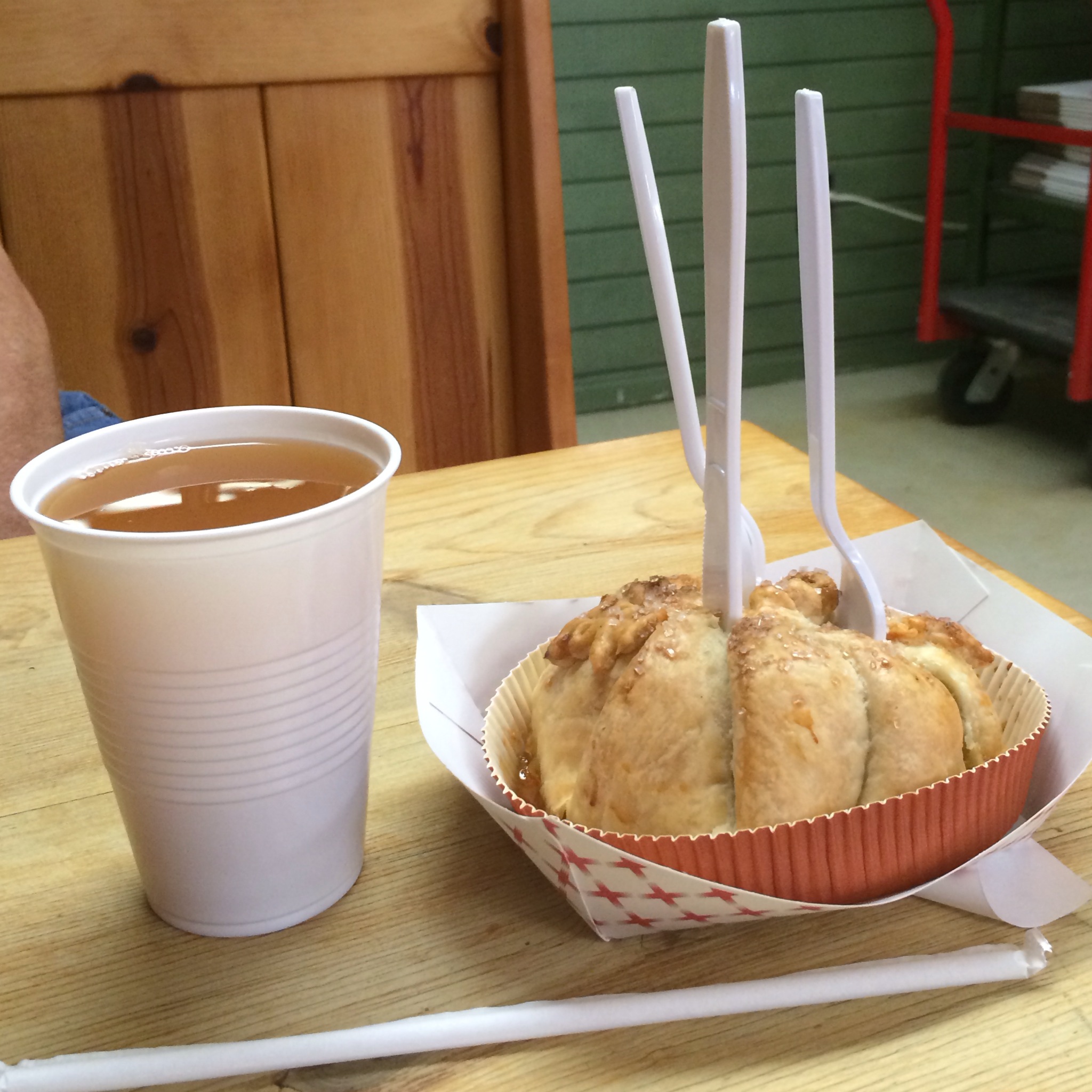 So, the hues of you for me as a San Diegan in fall are a rich, but subdued, palette of oranges, yellows, greens, browns, and reds.  And I can feel them and smell them and taste them as much as I can see them.  Warm and dry and spicy…and yummy.  Like this apple dumpling I had today.
