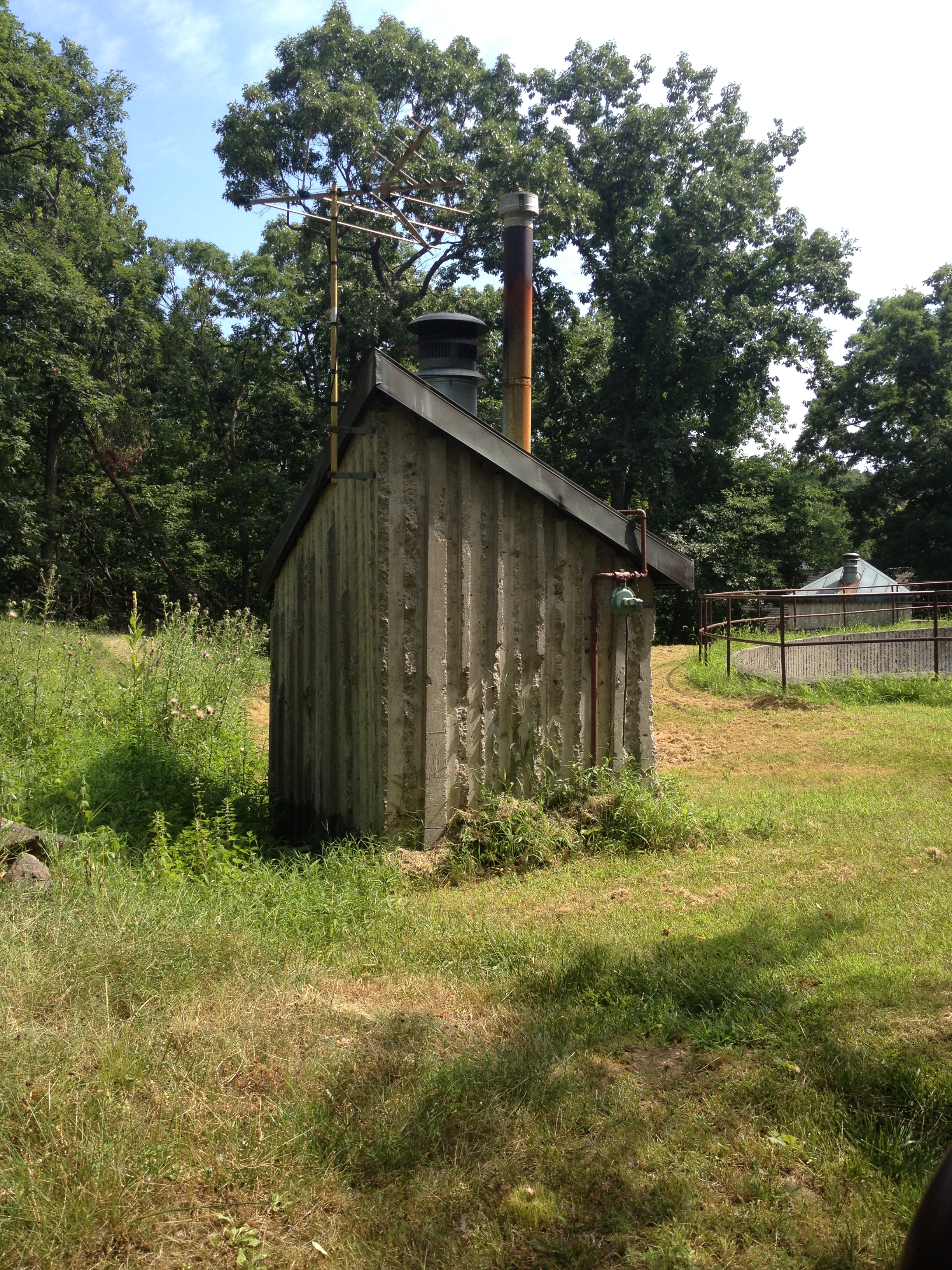 As I looped around the tree house to head back I noticed some other buildings and happened on this interesting little building…with a rusty orange stovepipe!