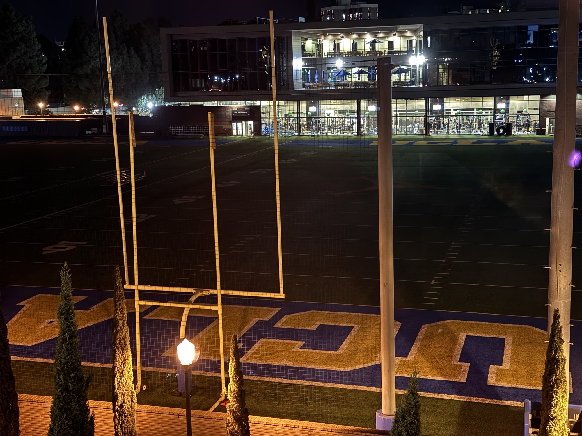 When I arrived at my room and peeked out the window, I found myself looking out at a football field, bolding marked UCLA.