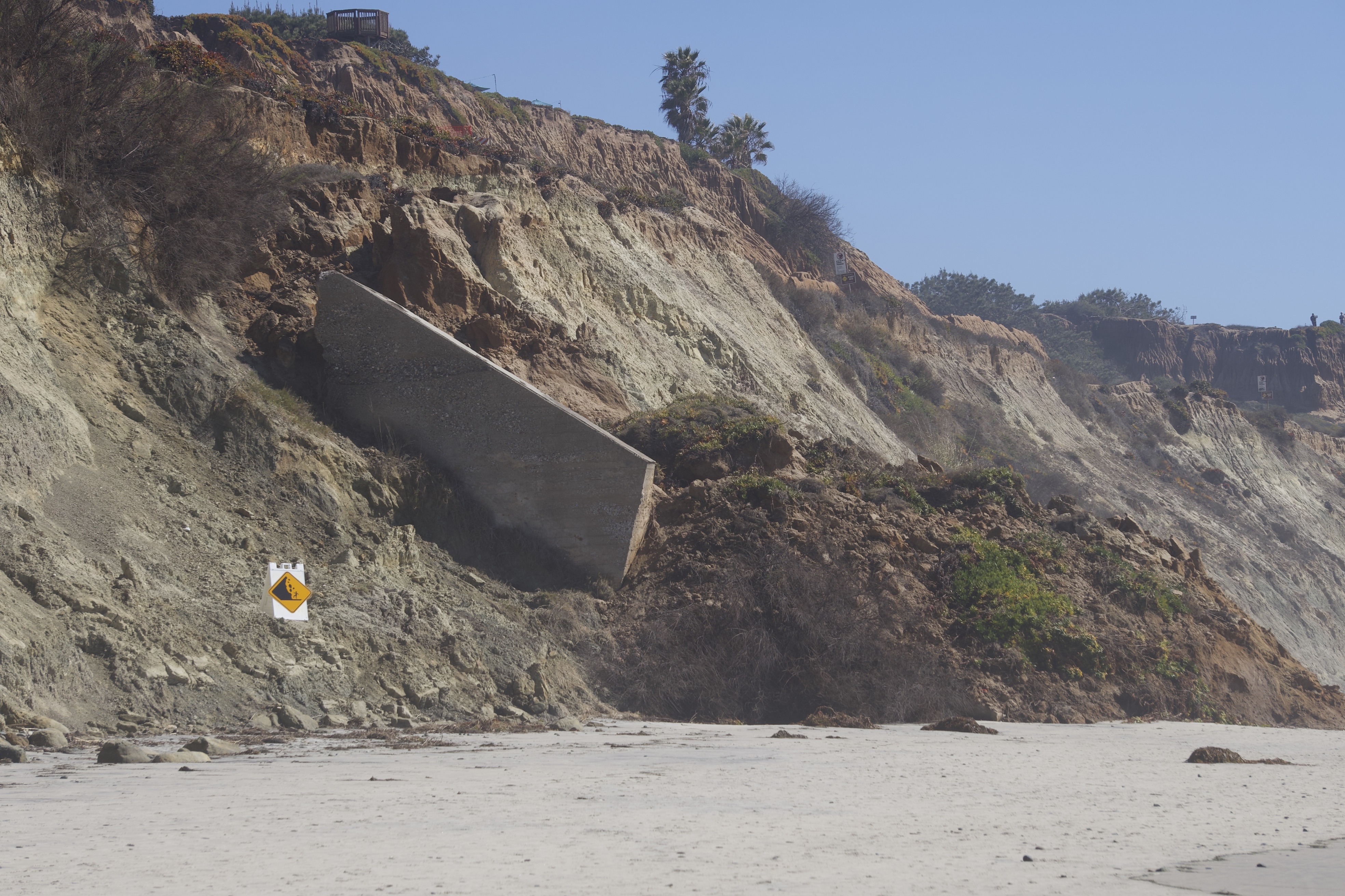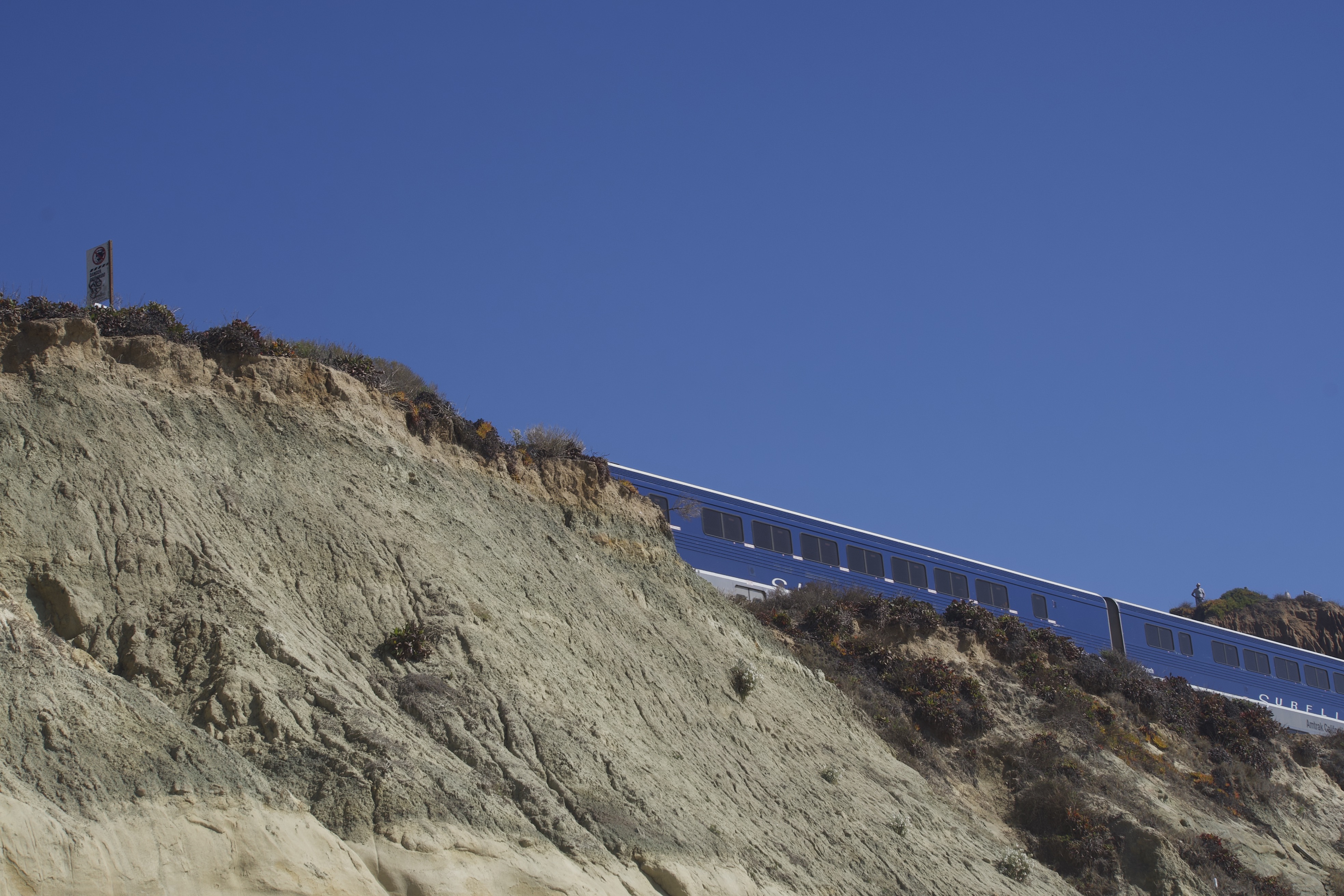 Even the train seemed to know about the warnings. I watched it creep slowly along the cliffline, gingerly traversing precariously close to the edge, perhaps trying to avoid any more cliff damage.
