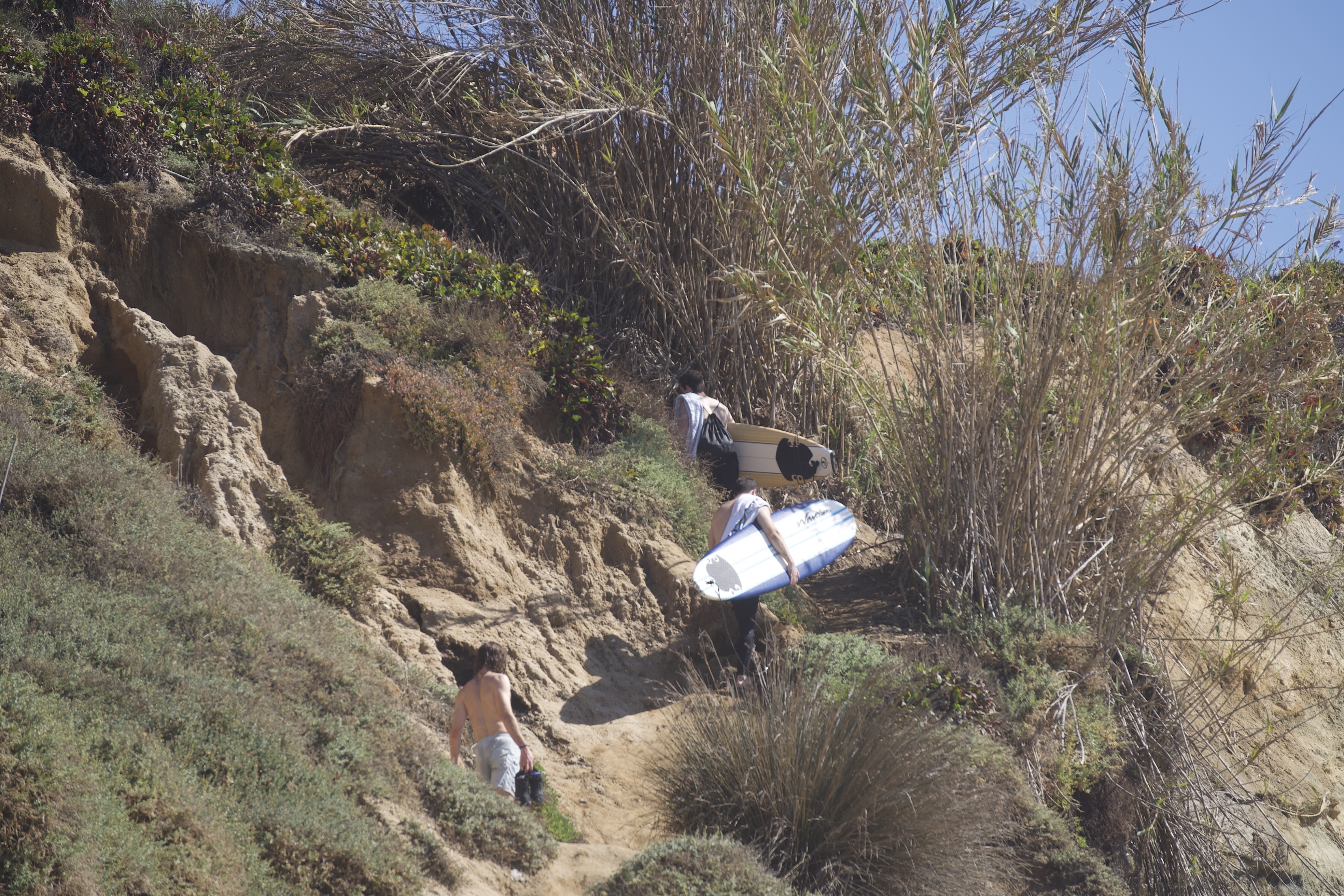 Shark warnings have become pretty commonplace. When I pointed it out to my husband, he told me about the drone images this week of a great white hanging out off the coast. (Check the link for the news story) Yikes! But there were still surfers out–I watched this group climbing up the cliff after their surfing session.
