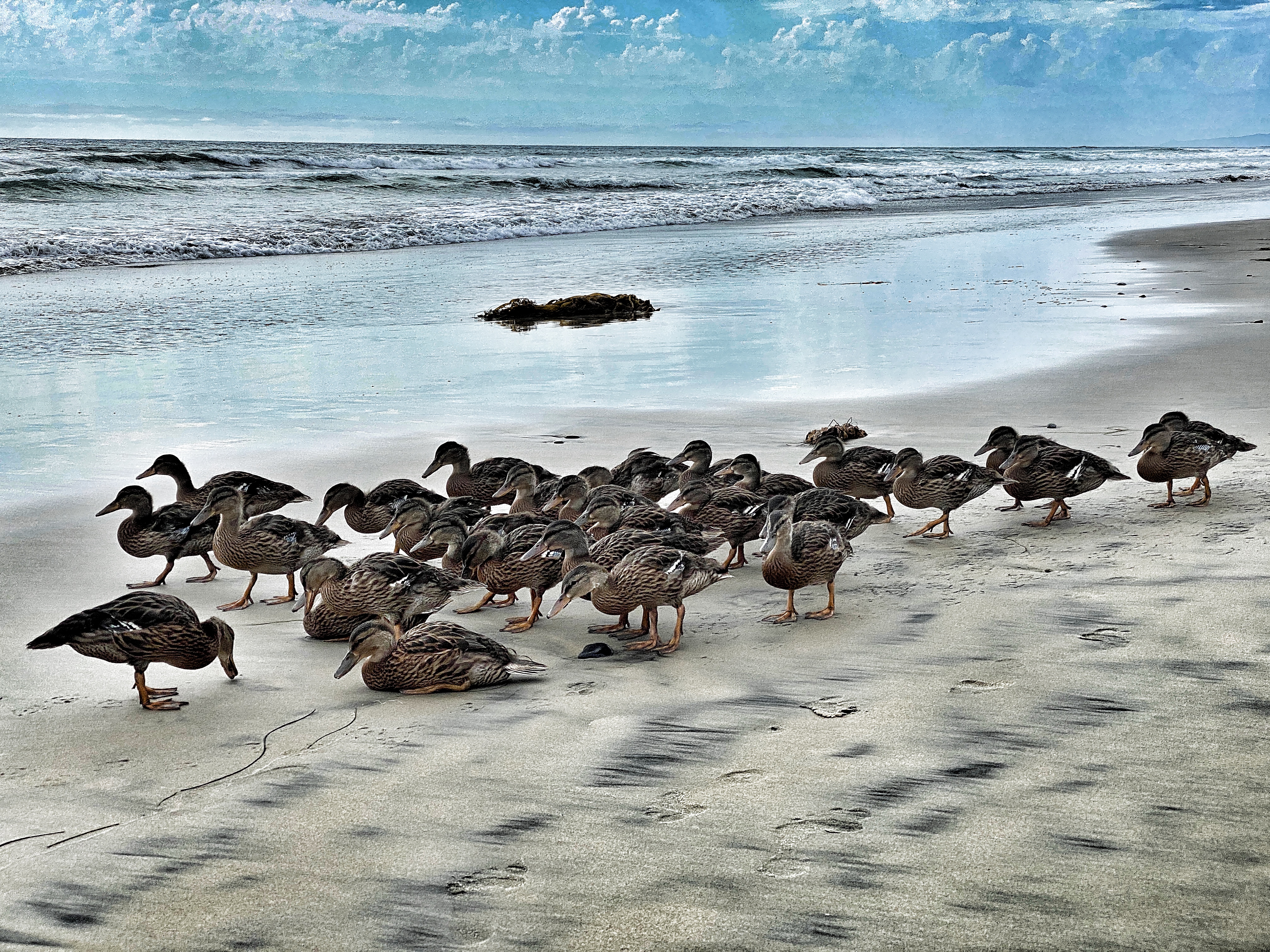I’m still wondering about that sord of mallards (if they had taken flight they would have been called a flock). In all my walks on the beach over the years, this is my first sighting of mallards on a pilgrimage. Where did they come from? Where were they going?